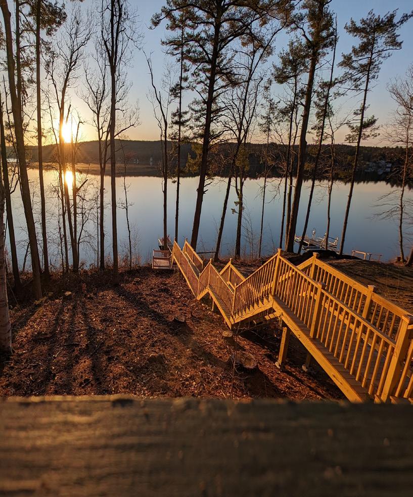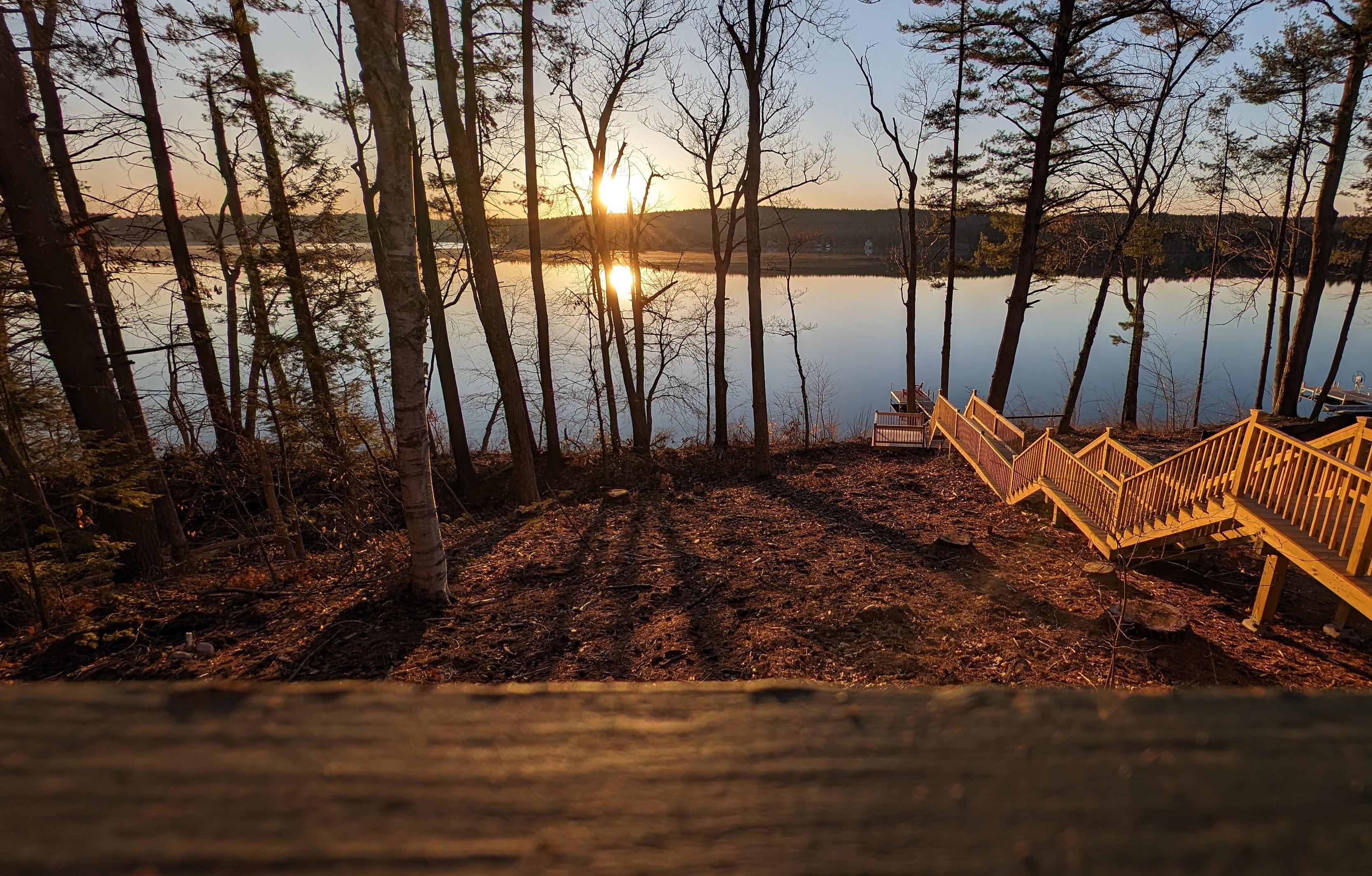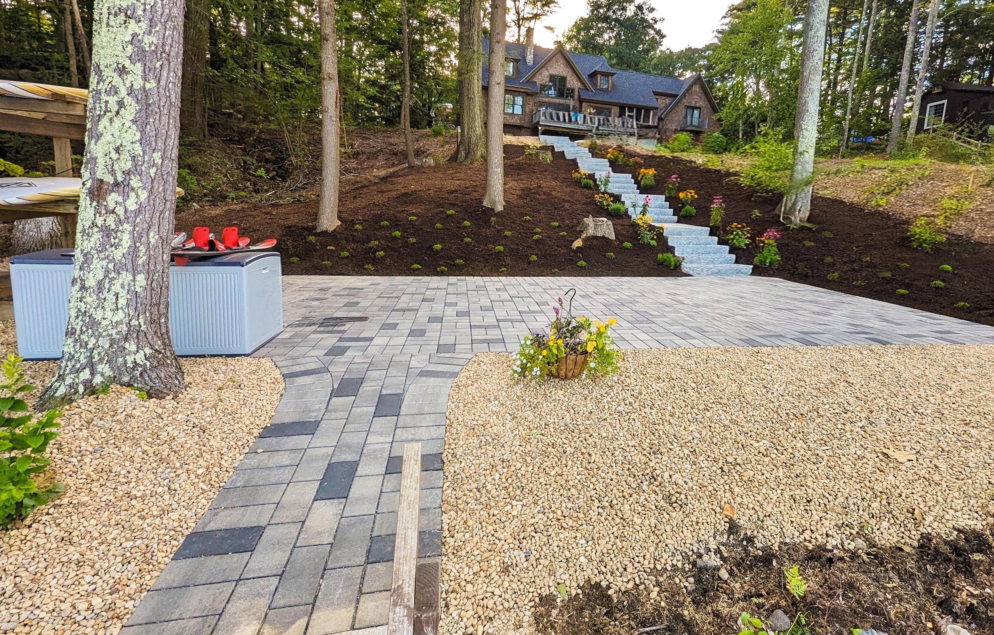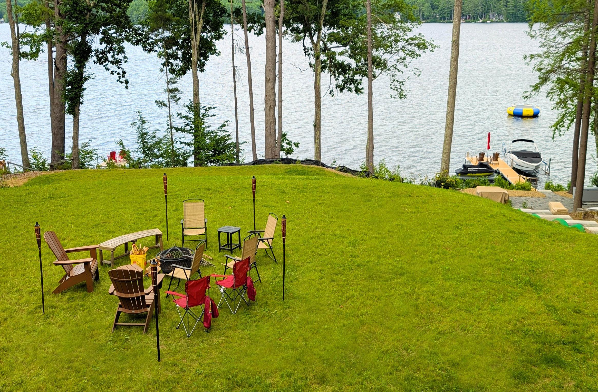 • Hardscaped granite stairs from house to lakeside patio to 500sf platform near lake (built 2023)