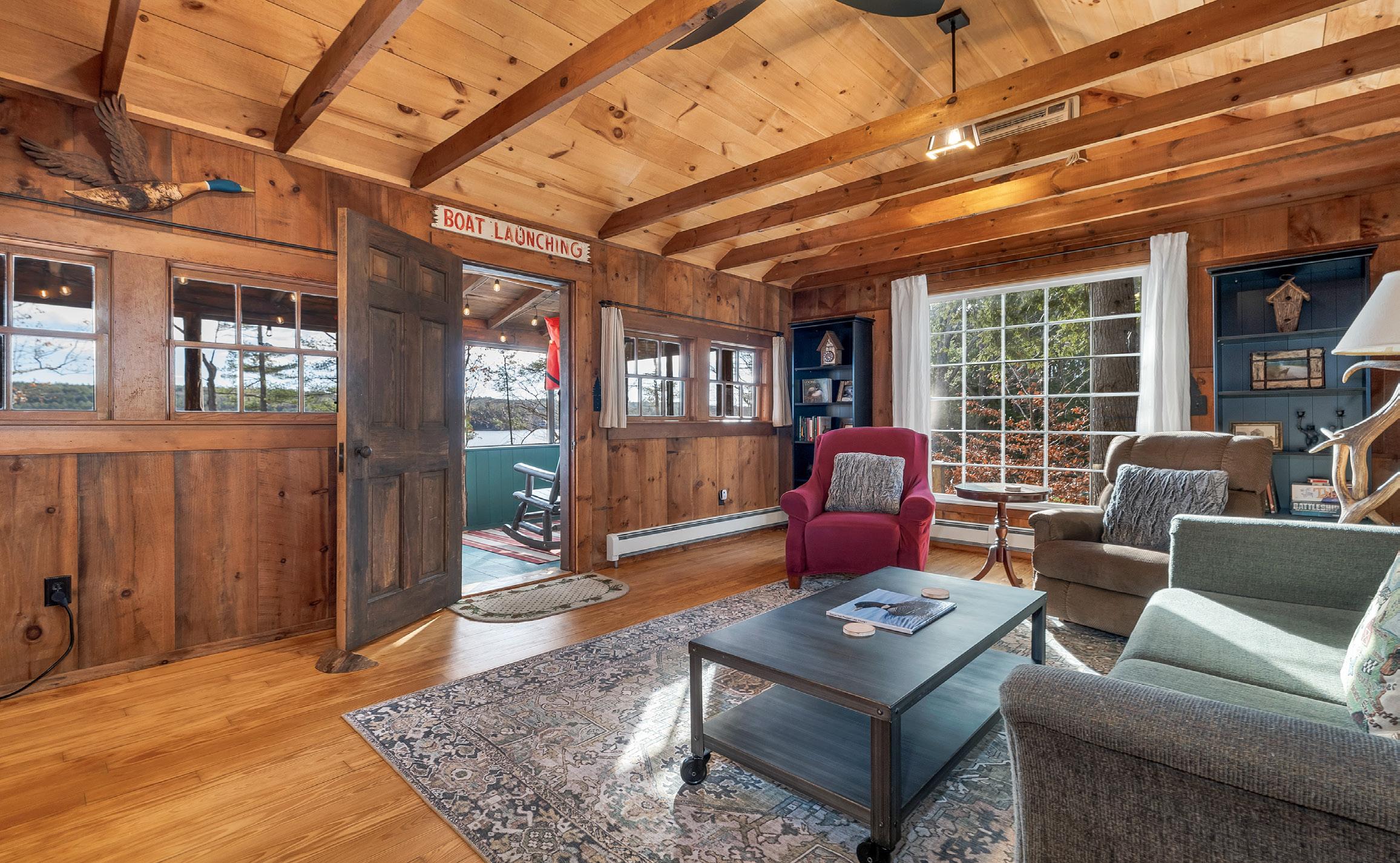 The all wood interior includes cathedral ceilings, 2 bedrooms, bath, eat-in kitchen, living room and an 20’ x 8’ lakeside screened porch. There is a small fire pit in front and lakeside deck by the lake. The 30ft dock will fit your boat to enjoy the best of one of the cleanest and clearest lakes in New Hampshire.