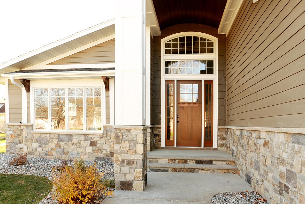 This 2,200-square-foot twin home located at 8124 E. Norway Pine Trail in the Willow Ridge III Addition subdivision in Sioux Falls is an extraordinary 3-bedroom, 2-bath, contemporary ranch-style home with timeless details! The exterior facade has a series of dramatic pitched roof lines finished in contrasting materials, while the combined use of vertical clad wood, stucco, and natural stack stone creates an interesting yet unified look.