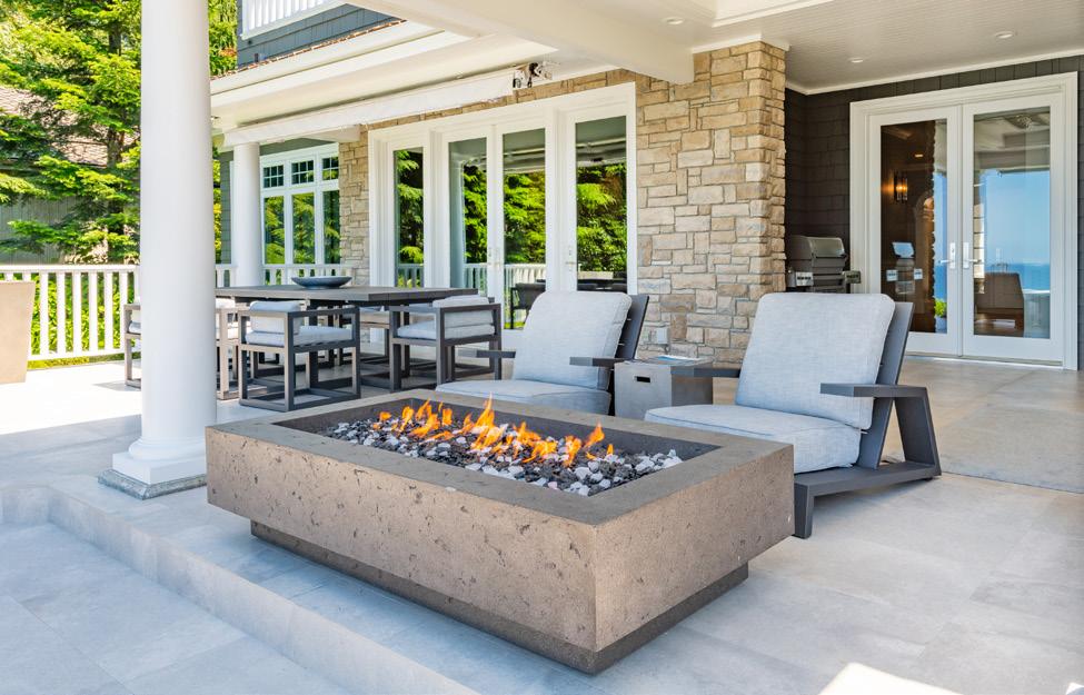 • Fireplaces or Fire Tables: Instead of settling for a basic standalone grill, consider the option of having a fireplace with an integrated grilling area. This versatile feature combines the best of both worlds—entertaining guests and savoring delightful meals in an outdoor setting. It also adds an element of sophistication and visual appeal to your outdoor area.