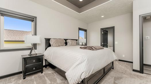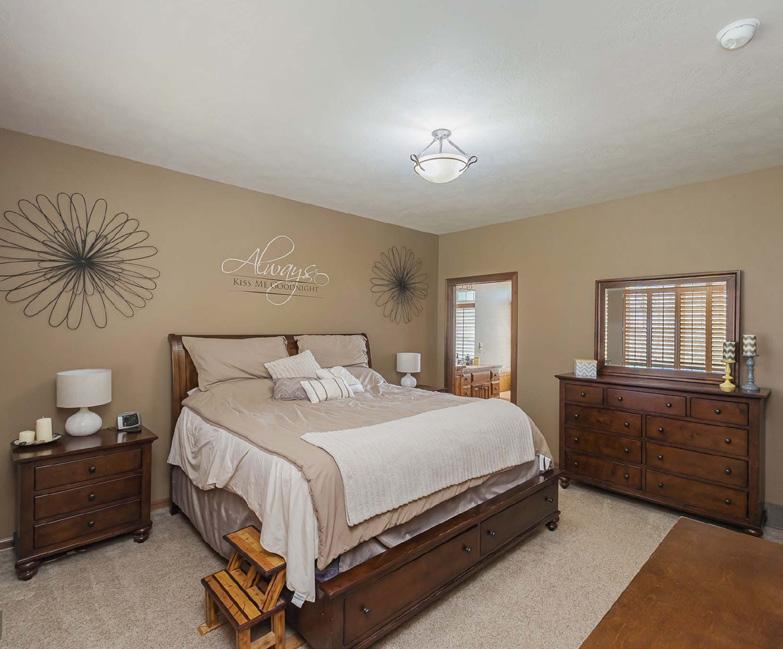 Immaculate condition 5-bedroom, 4-bath, 3-stall garage LUXURY RANCH WALKOUT! You can see the special care and attention to detail in every nook and cranny! Main floor featuring 9’ ceilings, hardwood floors, 3-bedrooms, full tiled guest bathroom, trayed ceiling in the living room. Master bedroom has a large full tiled bath with two vanities and large walk-in closet. Kitchen has a large 5’ x 6’ pantry. Lower level has 8’ ceilings, tiled guest bath and 2-bedrooms, one with its own private bathroom. There is an additional kitchen downstairs for guests to enjoy. Dual furnaces for zone heating. Oversized 3-stall garage is finished, heated, painted, and has hot and cold water with a floor drain. Underground sprinklers and rainwater diverters for the beautiful landscaping.