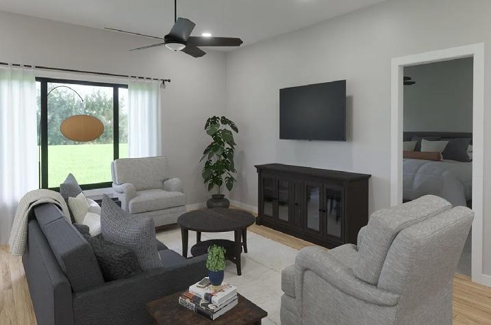 Welcome to this stunning new construction ranch home, where style and functionality blend together beautifully and efficiently! The front entrance offers true wow factor with the latest in stone, color, and design. You’ll love the 8 x 10 covered front entry. The main floor is open and spacious and offers three nice size bedrooms. This home is complemented by the sought-after warm, natural wood in the flooring and cabinets. It’s sophisticated yet warm and inviting! The open-concept living area features a beautiful fireplace and plank wall that highlights the focal point of the main living space. You’ll enjoy it from all areas of the living room, dining, and kitchen. The kitchen boasts a large walk-in pantry that you’re sure to appreciate. The dining area patio door opens to a beautiful 10 x 24 covered deck that you’re going to enjoy throughout the year. The primary suite offers a gorgeous bathroom with a beautiful tiled walk-in shower, a double vanity, and a very large linen closet. This home has main floor laundry with a drop-zone to ensure your home remains tidy and organized. The oversized 36 x 26 garage is built to satisfy most garage enthusiasts, featuring high ceilings, an 18 x 8 large door on the main, and an 8 x 8 door on the third-stall side. With this home, you can build equity by finishing the basement or have it completed by the builder. The basement is all roughed in for three additional bedrooms, a bar, a full bath, and a large family room. This is a gorgeous home with all its class, sophistication, and square footage, and it could be your forever home.