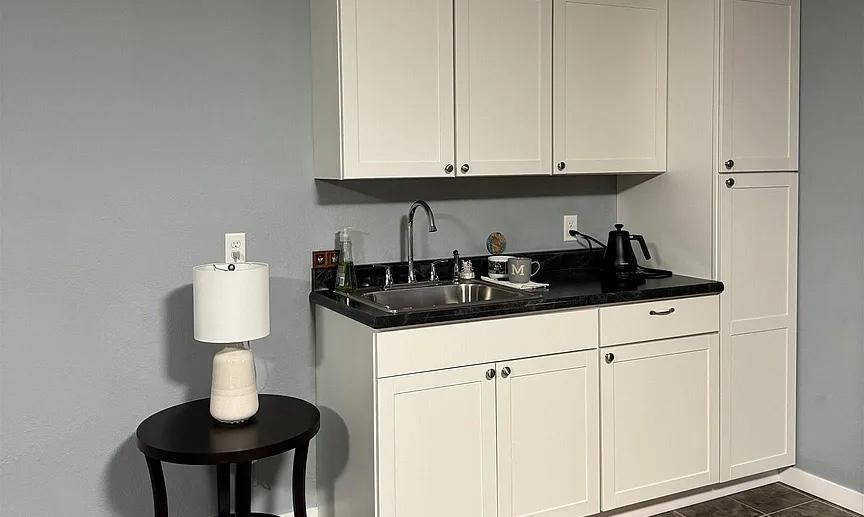 The kitchen has