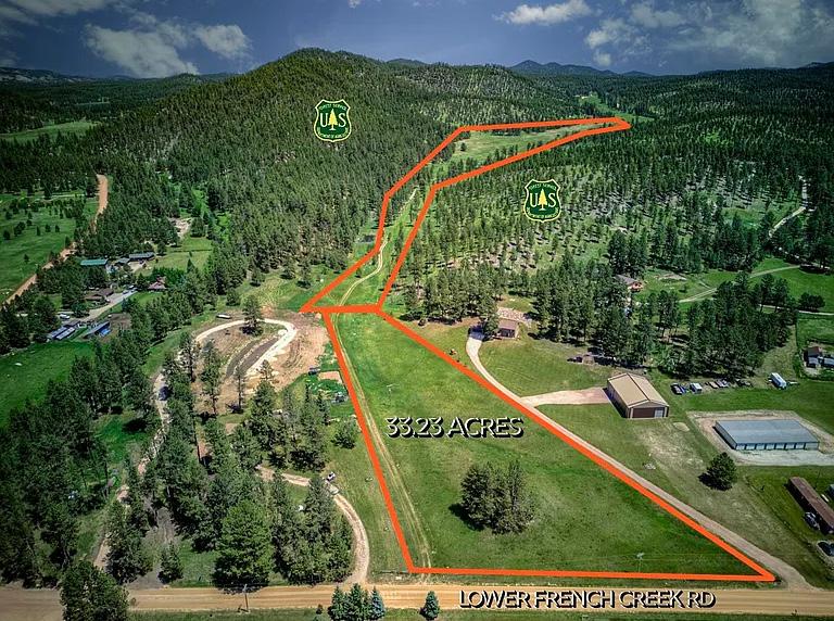 Secluded mountain getaway bordering Black Hills National Forest on two sides. Water well, electricity, septic installed & shop building started. Mountain top setting with pine, bur oak and aspen forest.