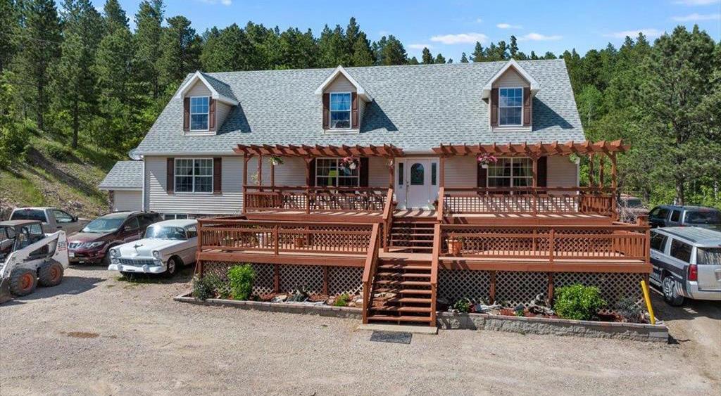 Enjoy privacy, scenery, and the convenience of being just minutes from town. Spacious 4-bedroom home with open living spaces, abundant natural light, multiple decks and patios. Two-car garage, 2 workshops, horse shelter, and covered hay storage. No covenants and ample room for recreation or livestock. Wooded setting overlooking the Salt Creek Valley with expansive views of the Black Hills.