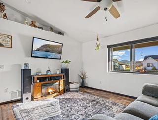 4 Bed • 2 Bath • 1,446 Sq. Ft. Main floor living room with pellet stove, dining, room, kitchen, 2 bathrooms and 2 bedrooms. Primary bedroom with en-suite. One bedroom upstairs, and one bedroom in basement. Home is all electric. The .20 acre has a fenced backyard.