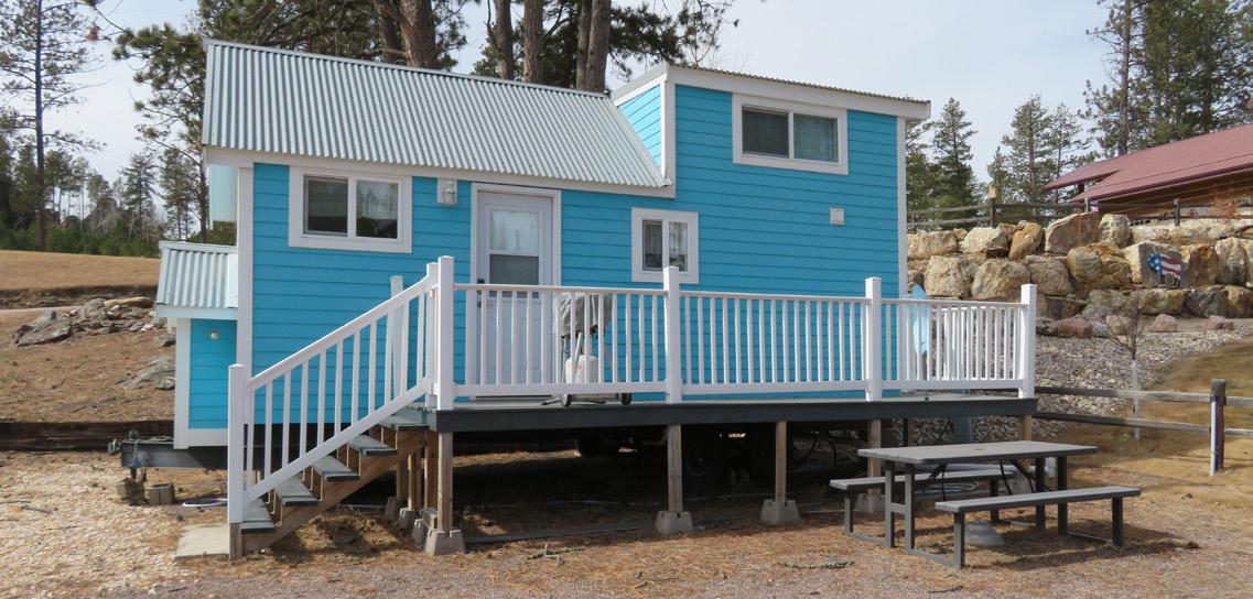 microwave and butcher block cabinet surface. The bathroom/laundry room has a full walk-in shower. The on demand propane water heater was new in 2025. The home package also includes a 6’x20’ deck. The material that it is constructed of is not Trex but somewhat similar to that look. If you are looking for a well-built, cottage style tiny home to place on your acreage look no further than this home! The axle and tires are in place to make this a very simple and easy transfer. Call Anne 605-673-1177 or email at afuchs@gwtc.net for any questions and your private showing! $56,500 MLS #87788