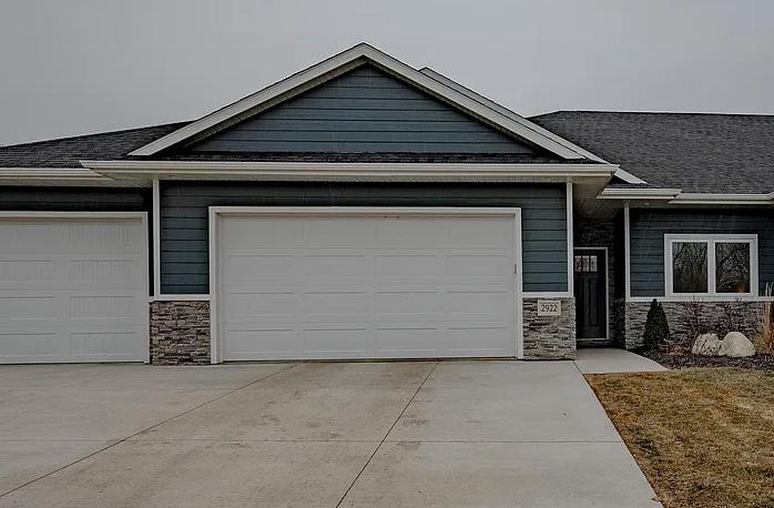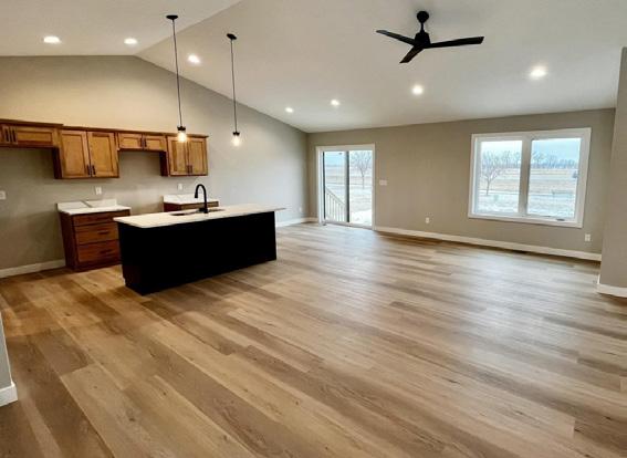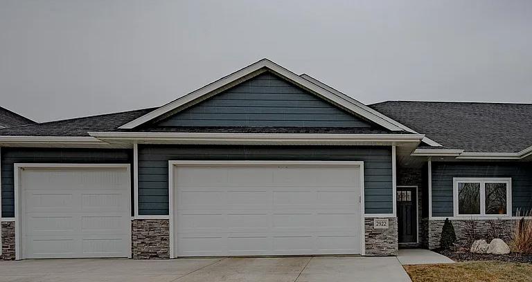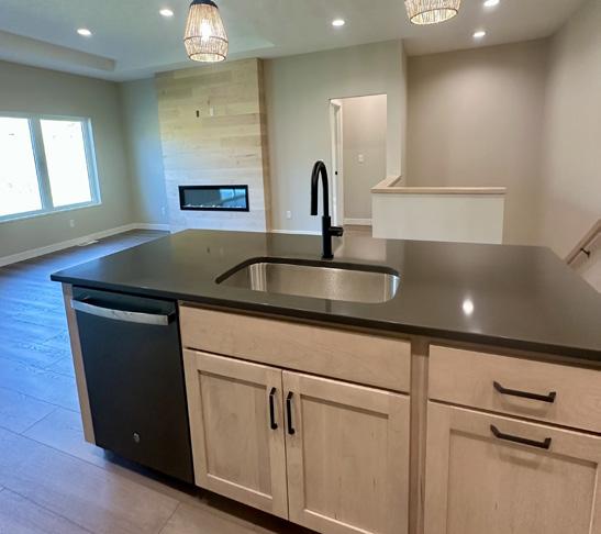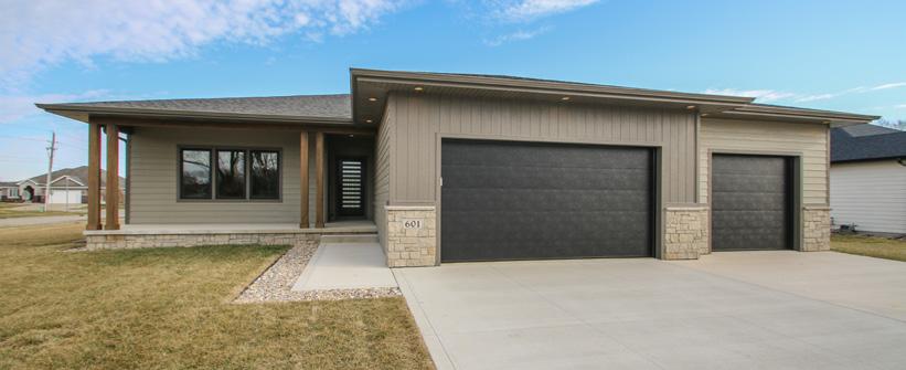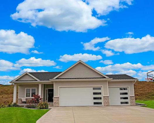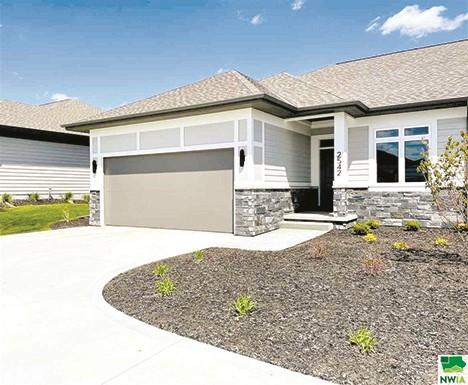 Ct. Hinton, IA 2 bedroom | 2 bath | $409,000 New construction, wonderful townhome with 2 bedrooms/2 bath/3-stall garage. This lovely open floor plan boasts an electric fireplace, quartz tops, LVP flooring throughout the main, with carpet in bedrooms.