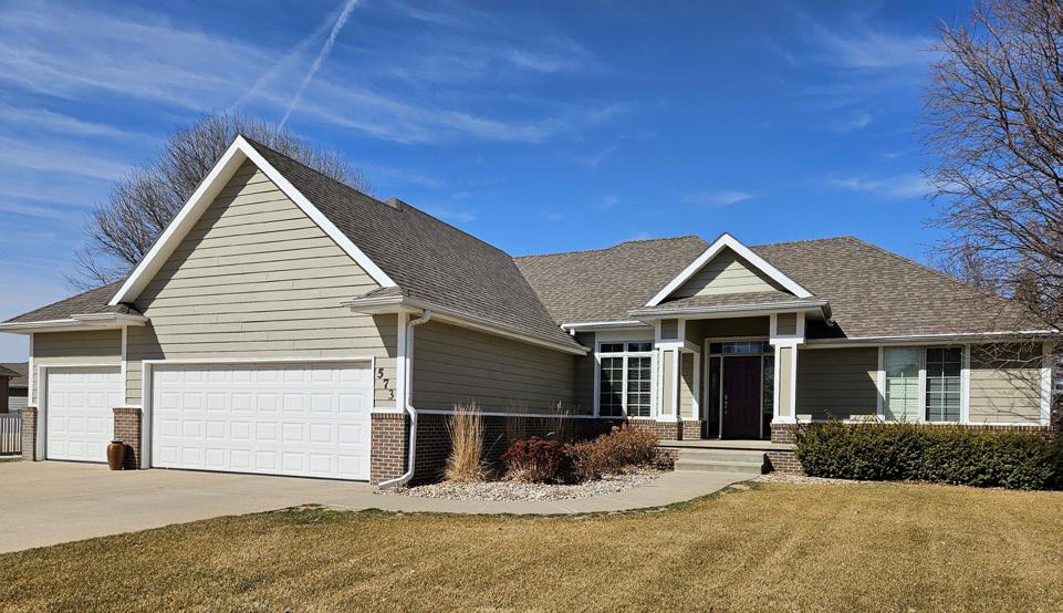 are blooming in the market 703 Timber Rd. North Sioux City, SD 4 bedroom | 4.5 bath | $1,650,000 New kitchen, custom cabinets. One of a kind, custom-built Stone Mill Oregon timber home on 1.16 acres adjacent to Dakota Dunes. 20’ vaulted ceiling, 5 fireplaces, primary suite on main, Hickory and tile floors, Rumsford fireplace with Chiefcliff stone, covered front porch.