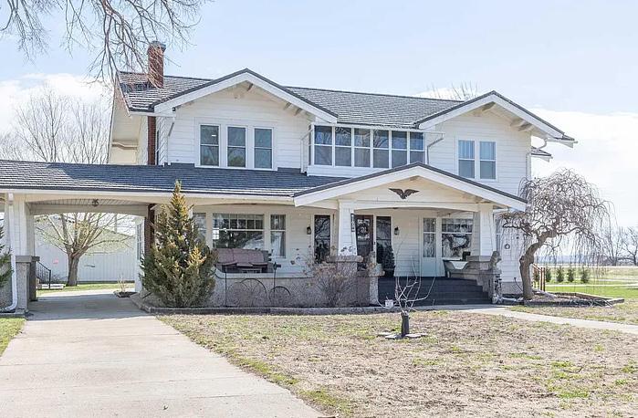 This charming 5‑bedroom, 3‑bath, 1½‑story Bohemian‑style stucco home, built in 1920, sits on a picturesque in‑town acreage along a hard‑surface street. Rich with vintage character, it showcases original wood floors and trim throughout. MAJOR ADDITION: 48 X 96 insulated METAL BUILDING built in 2016. This amazing building is set up for basketball, volleyball and tennis standards. There is an apartment above with small kitchen and viewing of the activities below. No need to leave home with this incredible property, entertaining area for all seasons.