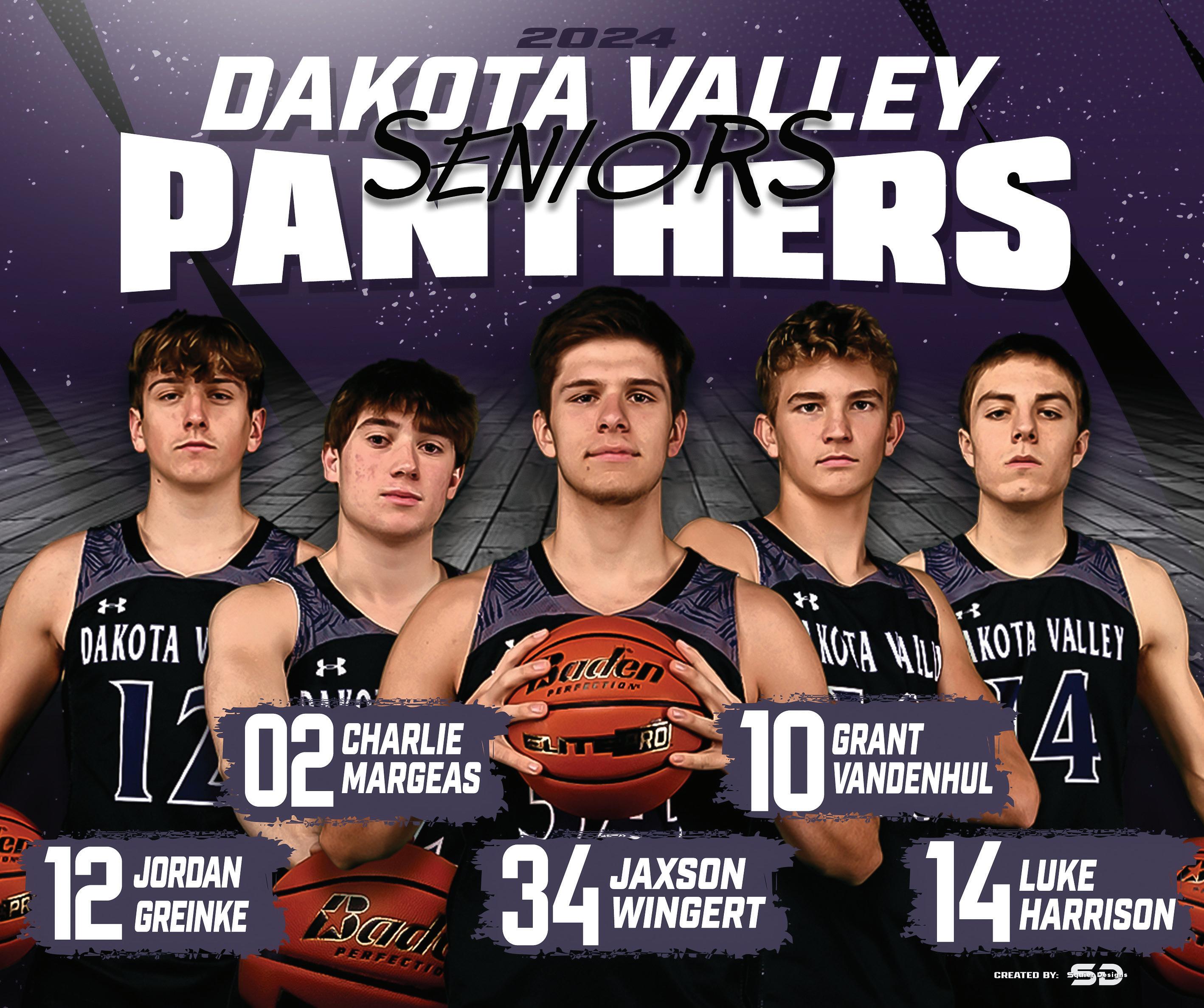 We couldn’t be prouder of this group of seniors. They have all worked so hard the last several years to become as good as they can be, and they are all having a great senior season. The dedication and work ethic of all 5 of these kids has helped lead our team to continued success, and put Dakota Valley basketball again among the best in the state. We have no doubts that each of them has a bright future, and we appreciate and will miss them greatly! - Jason Kleis, Dakota Valley Head Boys Basketball Coach