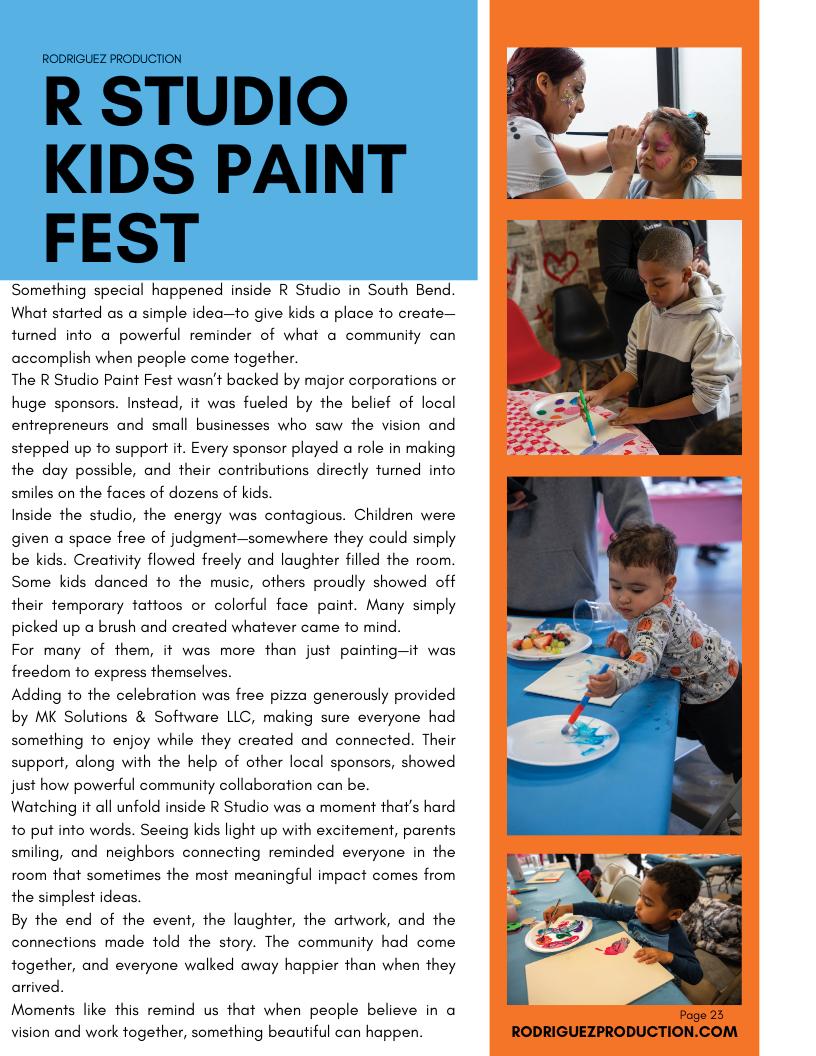 R Studio's Kids Paint Fest in South Bend, hosted by owner Rudy Rodriguez, turned a simple idea into a super special day for local families. Kids got to paint, dance, laugh, and just be creative while the community came together to support the event. It was a beautiful reminder of what can happen when local businesses and neighbors show up for their community!