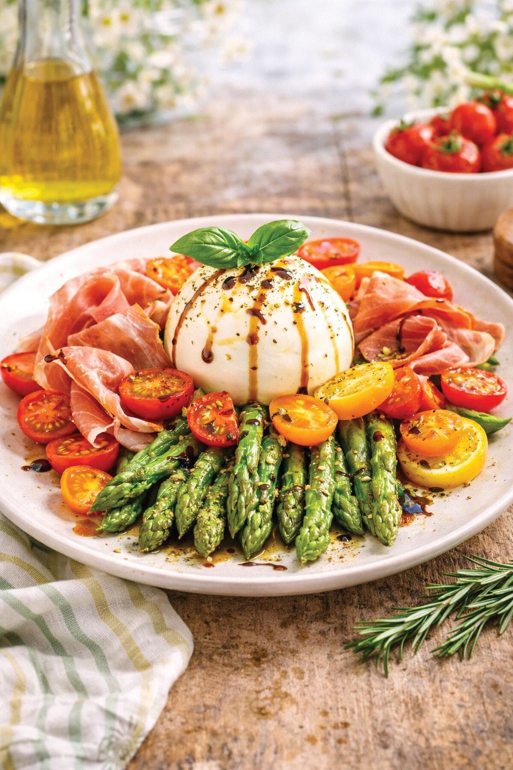 3. Place the burrata cheese in the center.