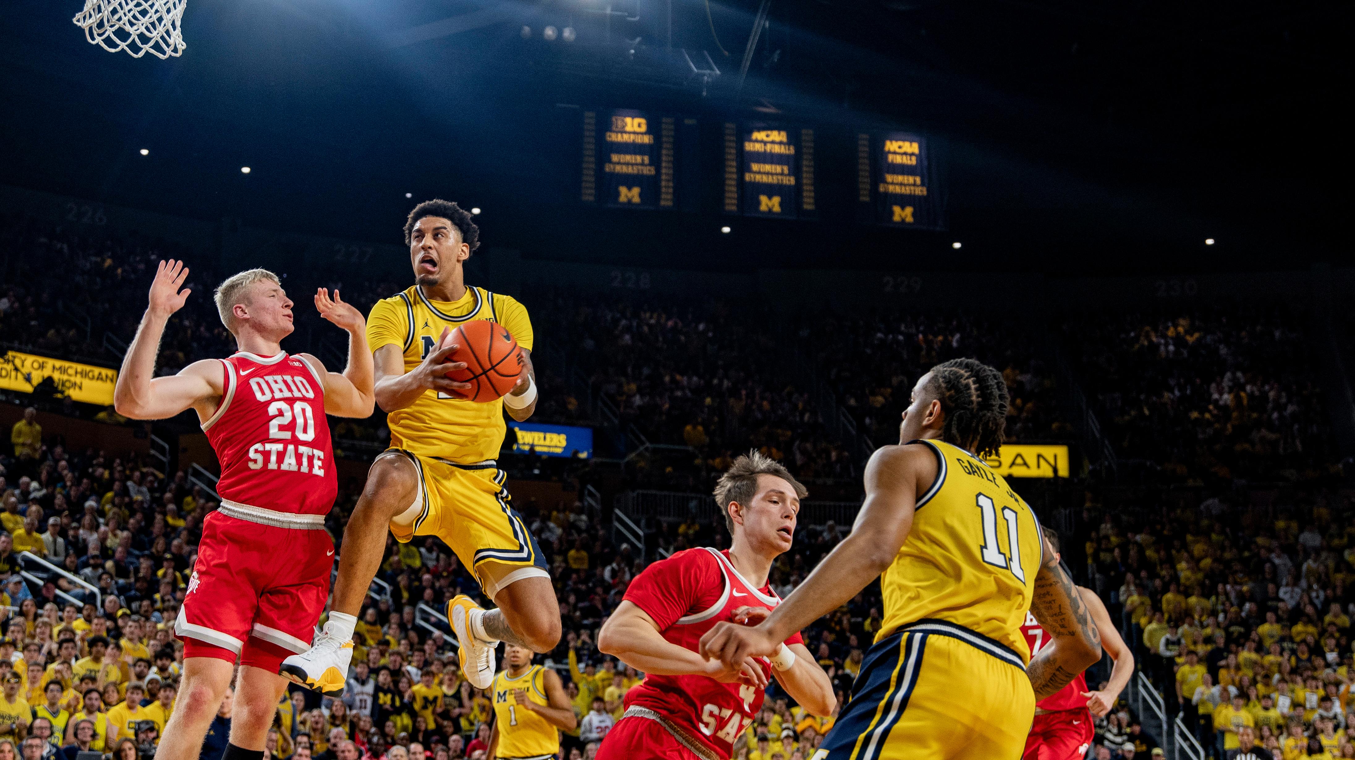As the game wound down into its final minutes, the Wolverines finally began pulling away from the Buckeyes. Second-chance points in the form of a Cadeau corner three and thunderous putback dunk from Mara ahead of yet another sky-walking layup from Lendeborg gave Michigan a 10-point cushion with four and a half minutes to play.