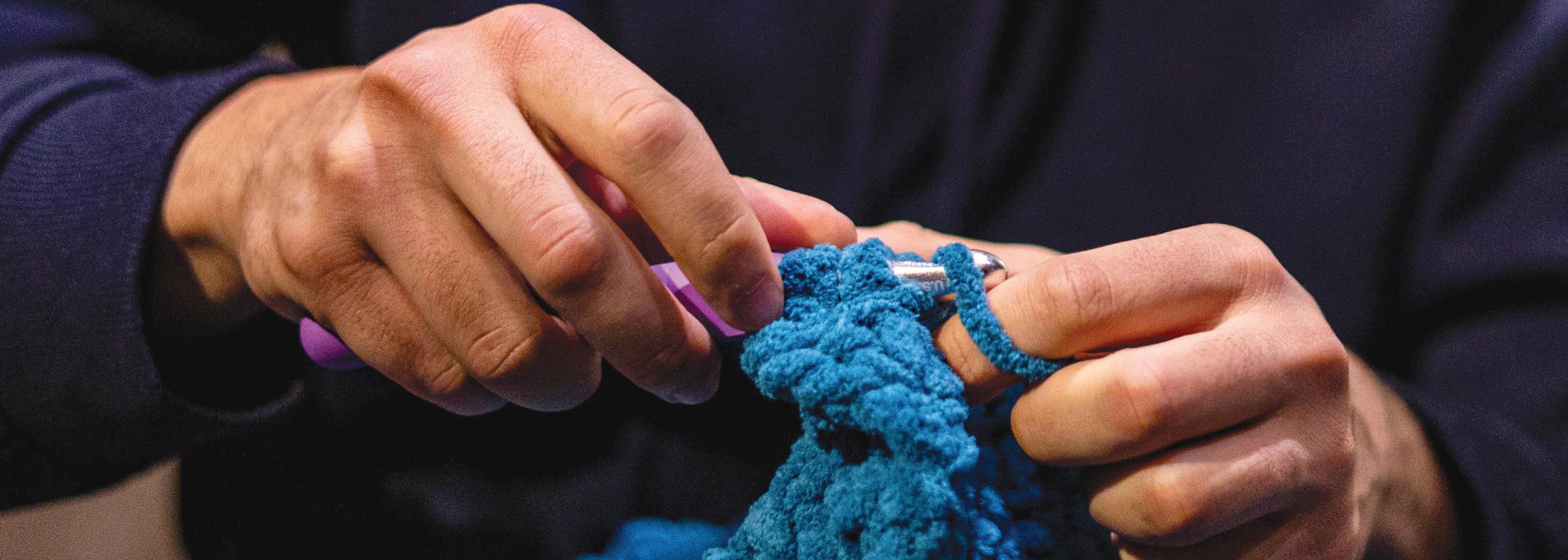Once I reached the fluorescent-lit aisles of the store, I gravitated toward a cozy, cyan-blue yarn. The color reminded me of the blanket that my grandmother gave my parents as a gift. It now rests in the shadows of my childhood TV room inside a larger wicker basket. The nostalgic color reinforced my somewhat shaky idea of a “crochet marathon.” Even though I had crocheted in the past, it had been a few years, and I was worried if my fingers