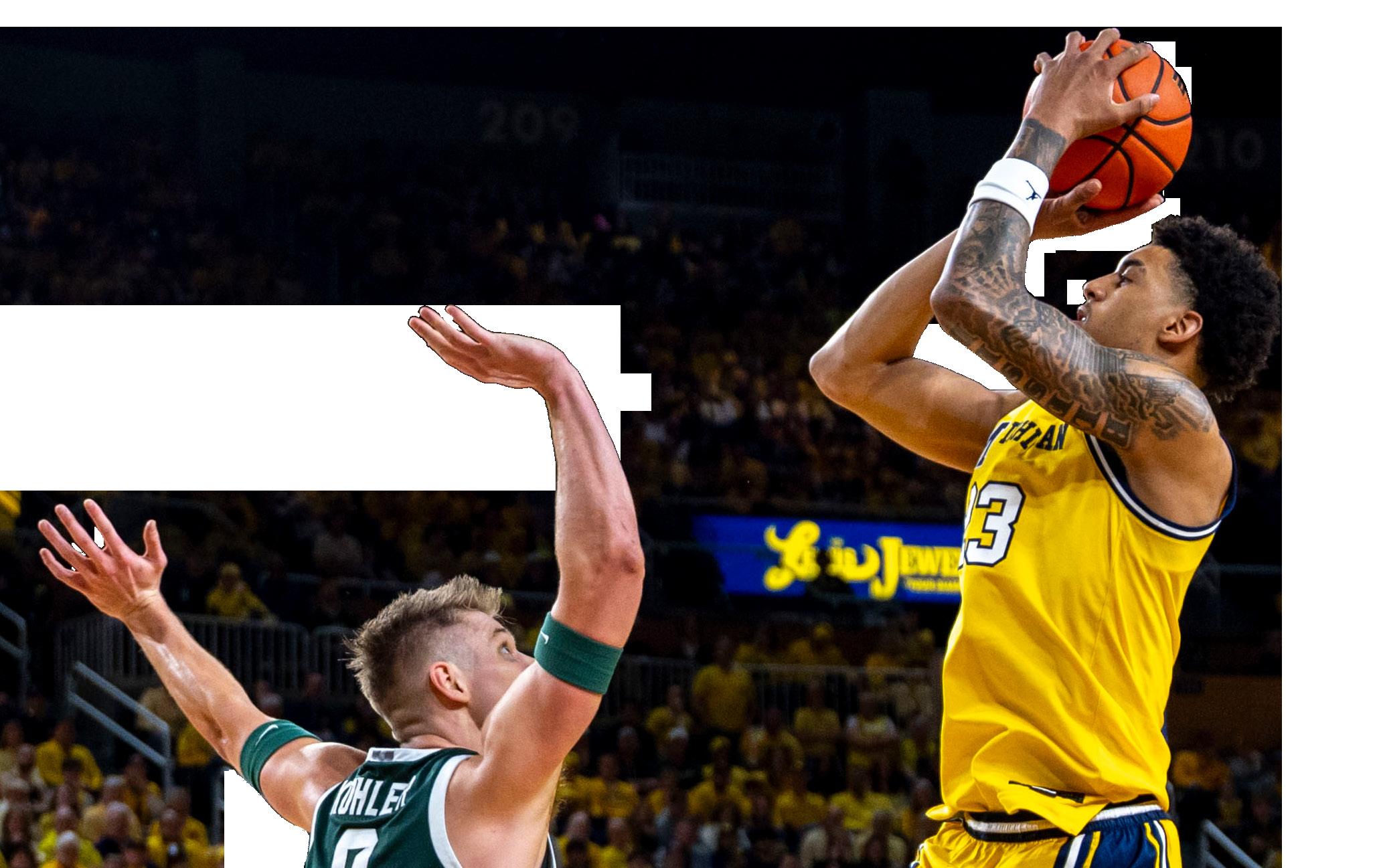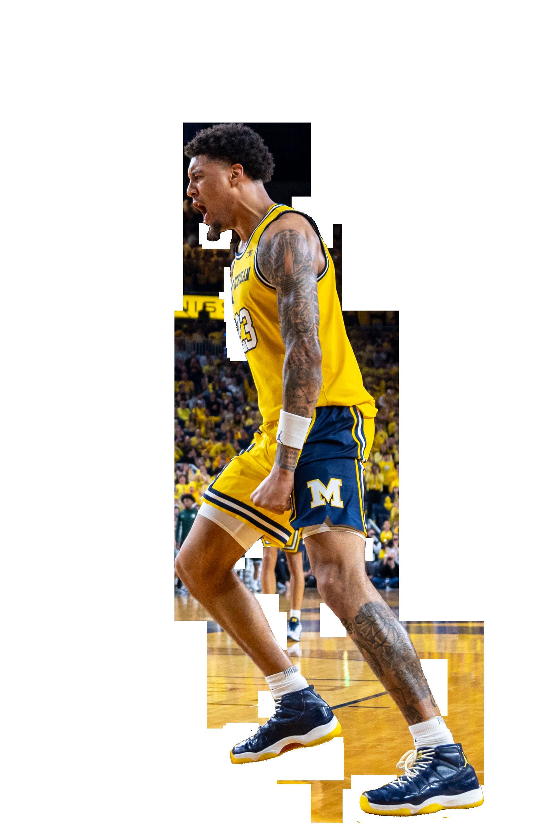 in the first eight and a half minutes. Meanwhile, Michigan sophomore forward Morez Johnson Jr. and junior center Aday Mara each picked up two personal fouls in the first half.