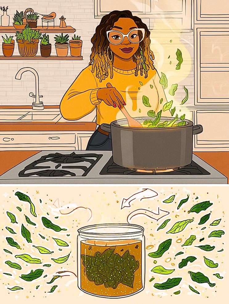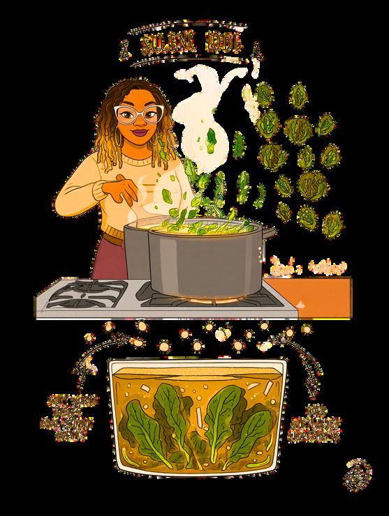 Your greens aren't getting weaker. They're giving their strength to the water. So you can drink it. Sip it. Soak your cornbread in it. Heal with it.
