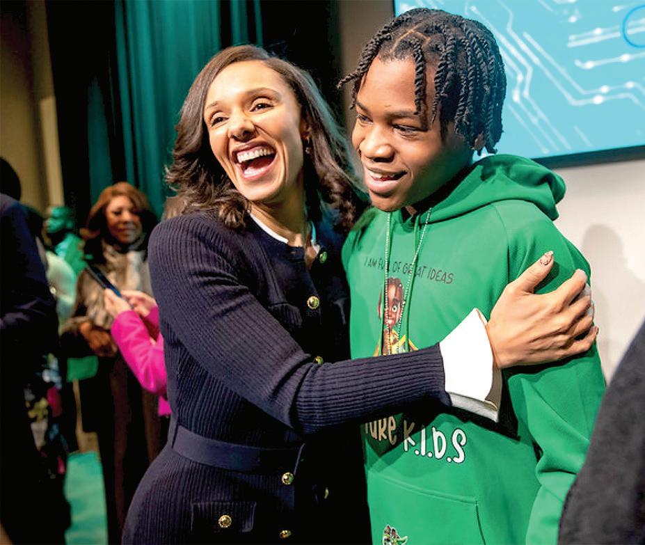 “It is so important to recognize that there are young leaders across the country, many that are born here in Detroit. I represent our city nationally and I tell people, ‘Yea I’m a D-girl I’m from the west-side of Detroit,’” Mitchell expressed. “But more importantly, I’ve been able to have experiences within an industry that not many of us, specifically women of color, have the opportunity to engage in and I’ve been the youngest person in the room, the only Black person in the room, and the only Sistah in the room, and I really had to articulate the importance of showing up, giving chances when others won’t, and being persistent.” As a trailblazing Black woman thriving in a predominantly male-dominated industry, her unwavering commitment to fortifying the connections between businesses and Detroit’s communities is unde-