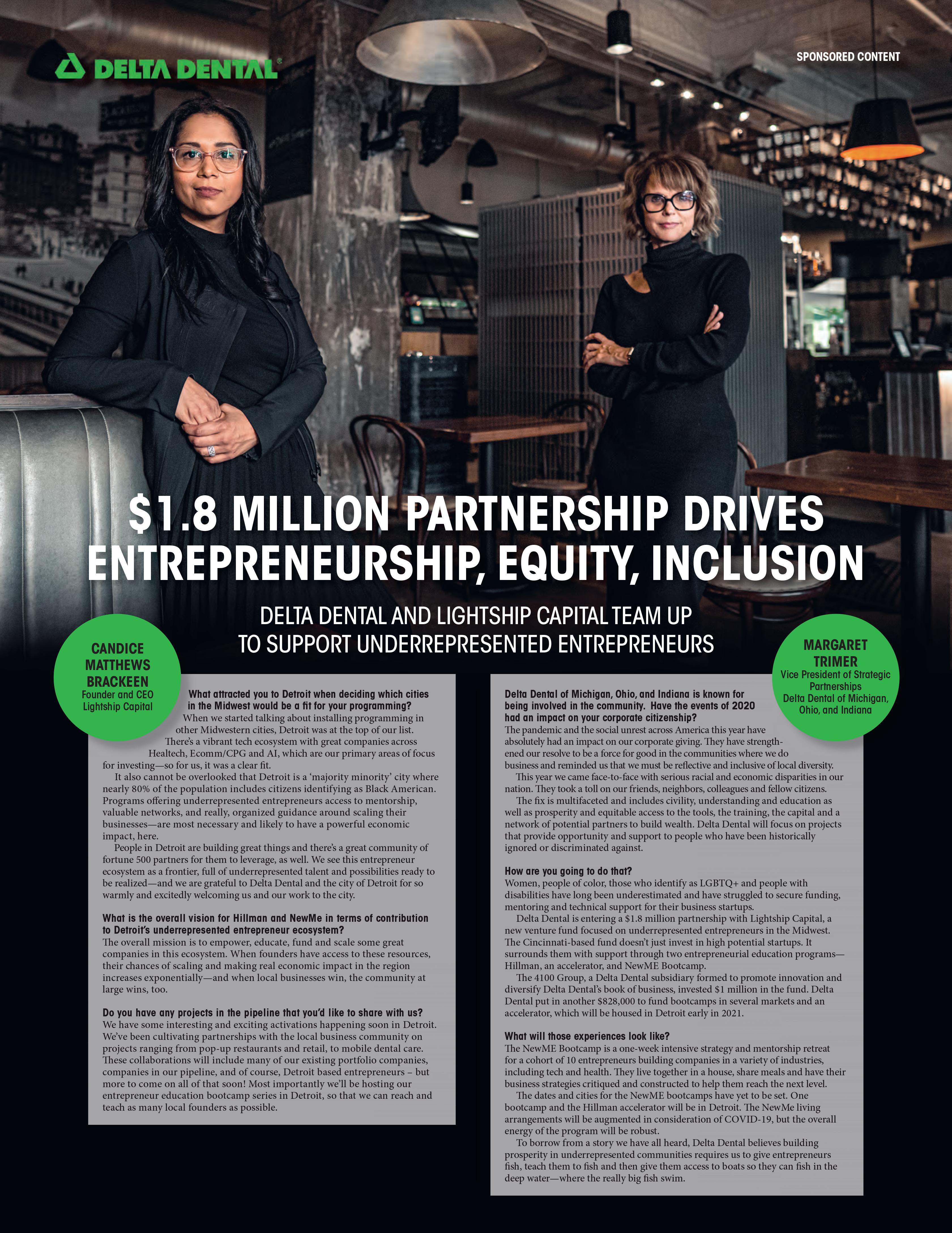 The 4100 Group—formed to promote innovation and diversify Delta Dental’s book of business—invested $1.8 million in Lightship Capital to support entrepreneurship, equity and inclusion.