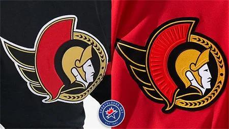 Here'saside-by-sideoftheusualhome/awaySenatorscrestwiththisnewredthirdjerseycrest,andyou'llsee,notonlythe additionoftheembroiderytotheredareathere,butalsotothecenturion'shelmetTheoutlineofthelogoisalsosinglecolour blackwithamuchthickerwidthoverall