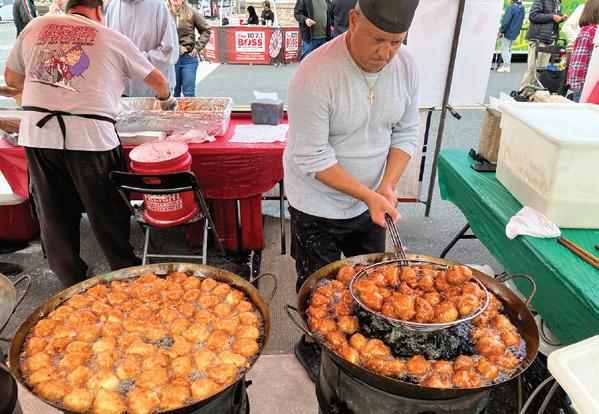 park and a miniature golf course. You could watch zeppole being fried at a stand, and the aroma tugged at your stomach. As you walked down Grant Avenueparts of which were closed down and filled with vendors - the smell of fried dough gave way to kettle corn and then to cigars near that vendor.