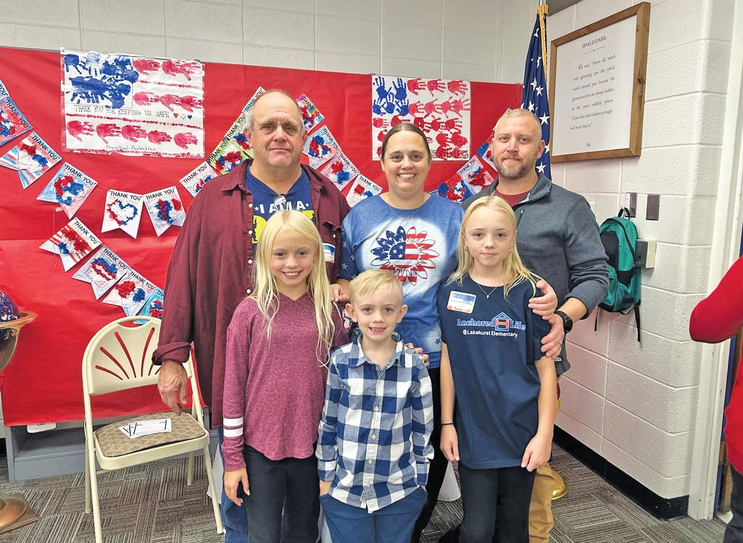 exited their vehicle receiving a royal cheer. Guests from the Manchester EMS, fire department, police department, Lennar, Home Depot and Building Homes for Heroes joined township residents from the neighborhood and other corners of the township to welcome them, waving small American flags.