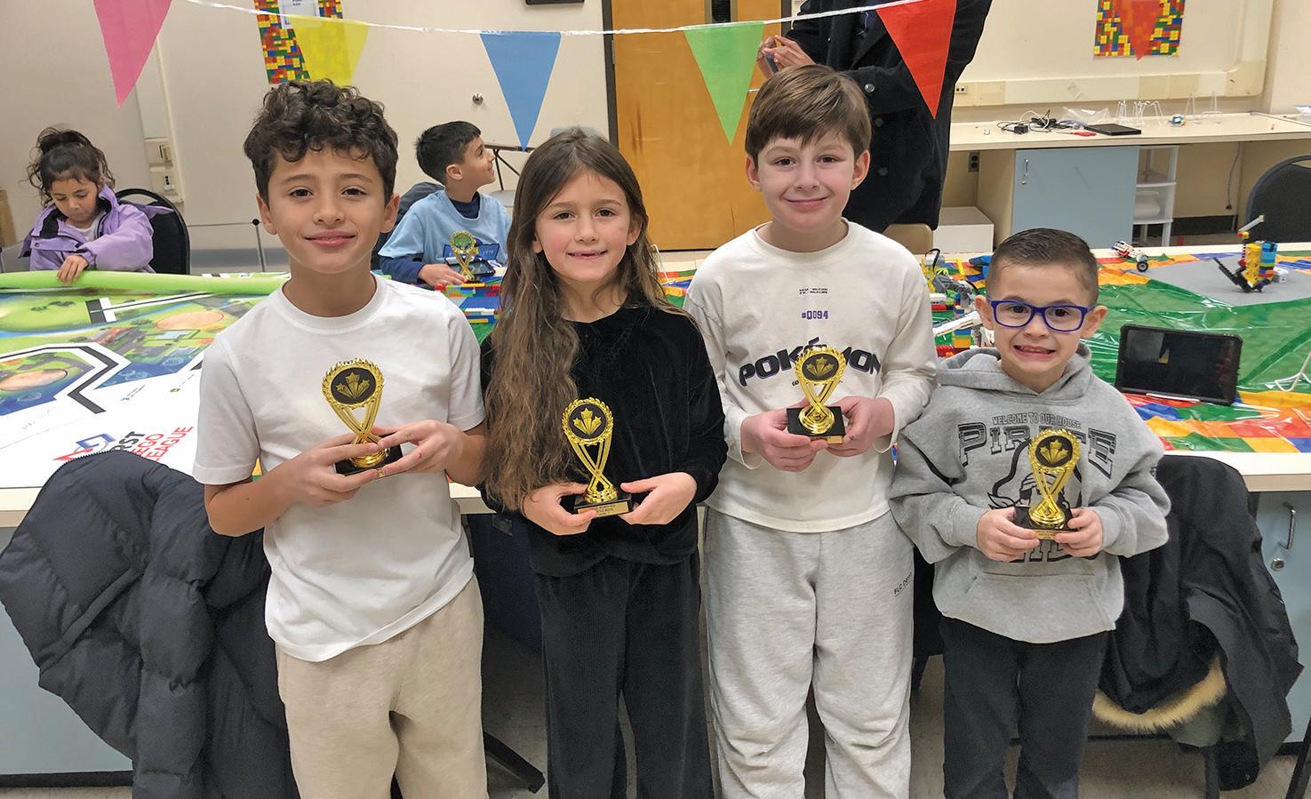 Luan, Julian, and Nora Miftari, along with Benjamin Klobucista, hold the trophies they received after completing the Mythical Creatures Stem Program.