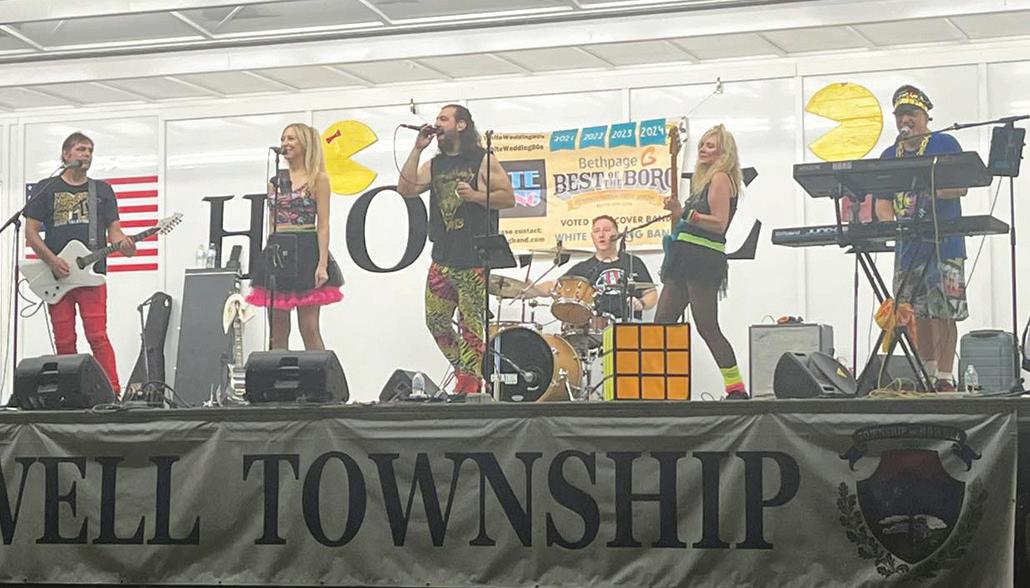Clockwise from top, the Howell Township High School Marching Band performs at Howell Day last year. An American Flag hoisted by a fire truck at last year’s Independence Day celebration. Local 80s-themed band White Wedding at a recent summer concert series.
