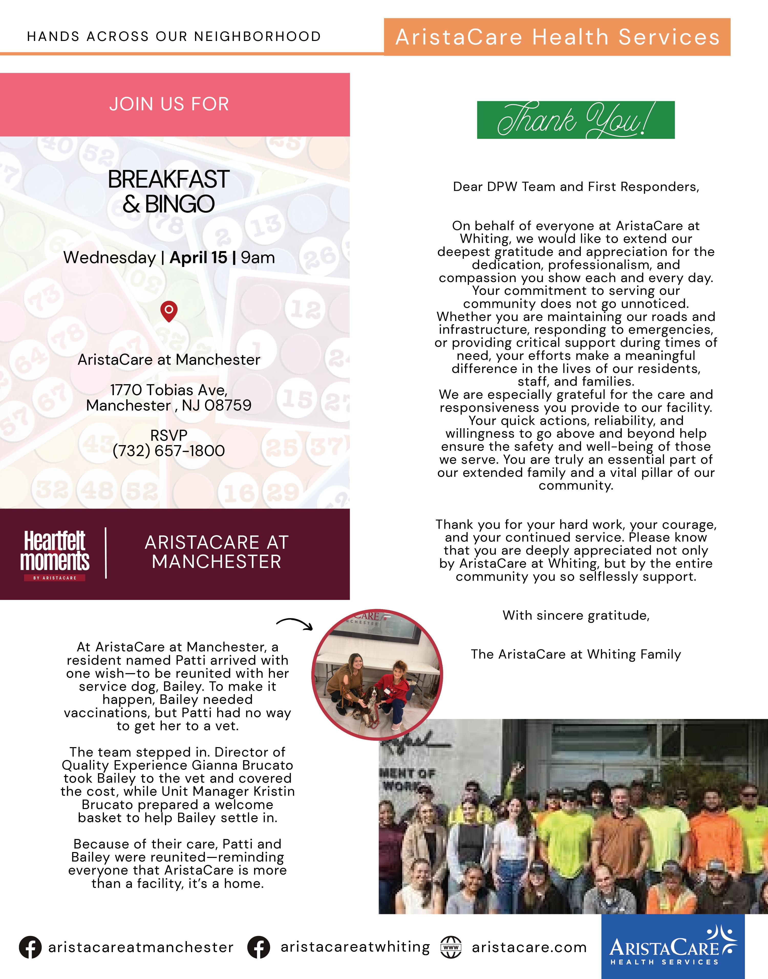 Mayor Joseph Hankins proclamation notes that “on March 22, 1972, amendments to the Older Americans Act established a national nutrition program for older adults, creating a network of community-based organizations dedicated to supporting the health, independence, and dignity of seniors and for more than five decades, Meals on Wheels Ocean County has helped older adults remain safely in their homes by providing access to nutritious meals and meaningful social connection.