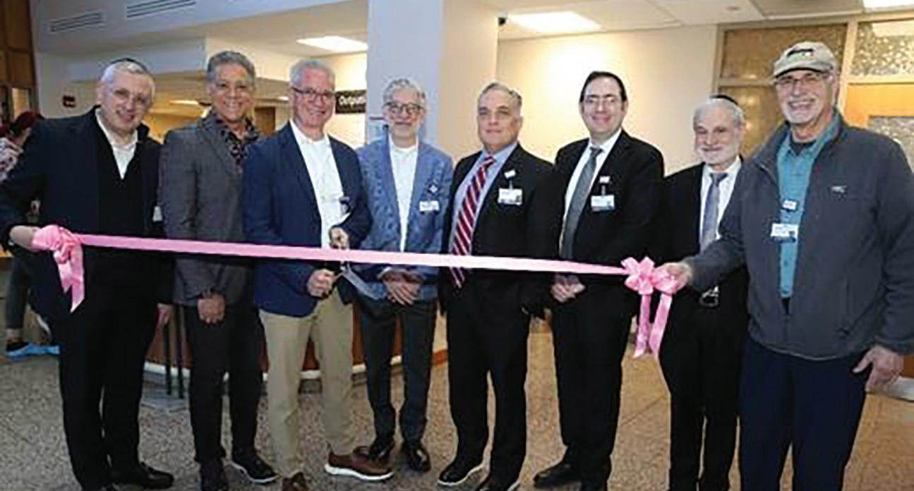 at the Lennar Foundation Wall of Hope Ribbon Cutting Ceremony at MMCSC are: Monmouth Medical Center Southern Campus Foundation Board of Trustee members (from left) David Greisman, Tom Calabro, Robert Calabro, Dan Stizza, Dr. Philip Passes, Chief Administrative Officer, Monmouth Medical Center and Monmouth Medical Center Southern Campus; Menashe Miller, Ben Heinemann, and Robert Lawson.