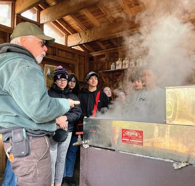 dents then moved into the Sugar Shack, where they learned how the sap is boiled down using a wood-fired evaporator to produce maple syrup. To complete the experience, students were able to taste the finished product, connecting the entire process from tree to table.