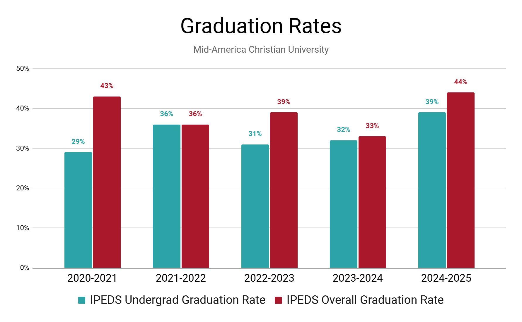 Note: The year listed refers to the year in which the data was reported to IPEDS, not the student cohort. For IPEDS Graduateion Rate Calculations, cohorts include first-time full-time, degree-seeking freshmen who start in the fall semester. For MACU, this typically represents less than 10% of the student body.