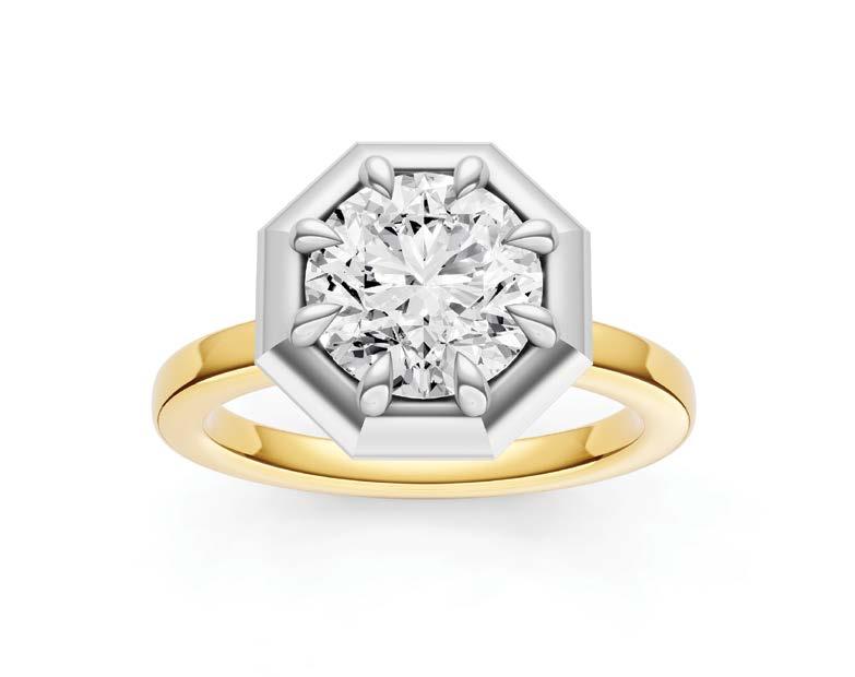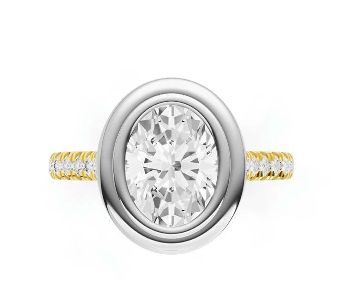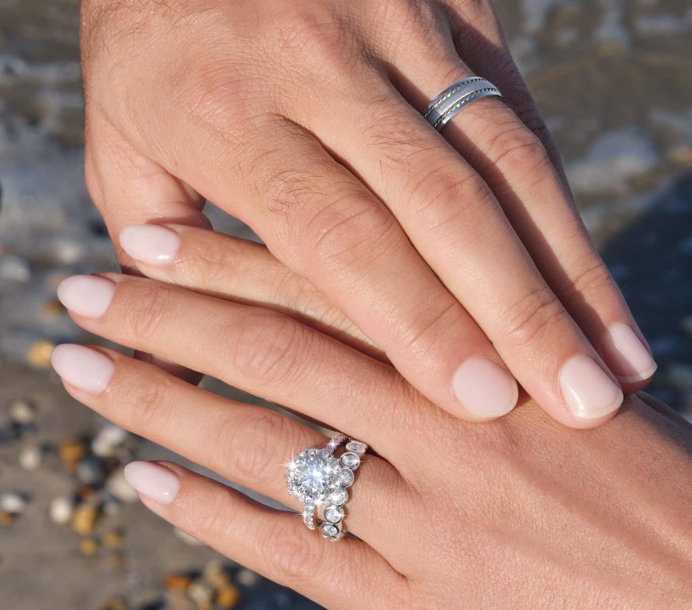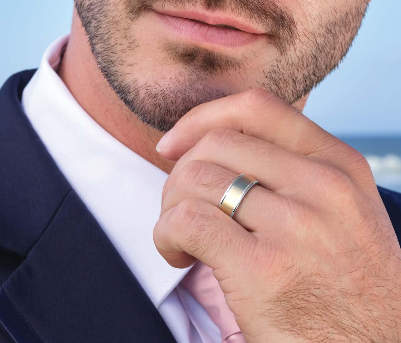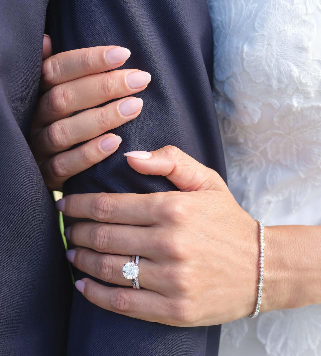 Lastly, the tried-and-true bezel setting. Favored by those who lean into contemporary design, bezelcrafted bands offer unmatched versatility. Whether refined or sculptural, minimal or fully embellished, this setting stands confidently on its own or blends seamlessly into a stack. It’s a statement style— subtle yet striking—worthy of wowing the bride. An engagement ring or wedding band is a symbol of enduring commitment.