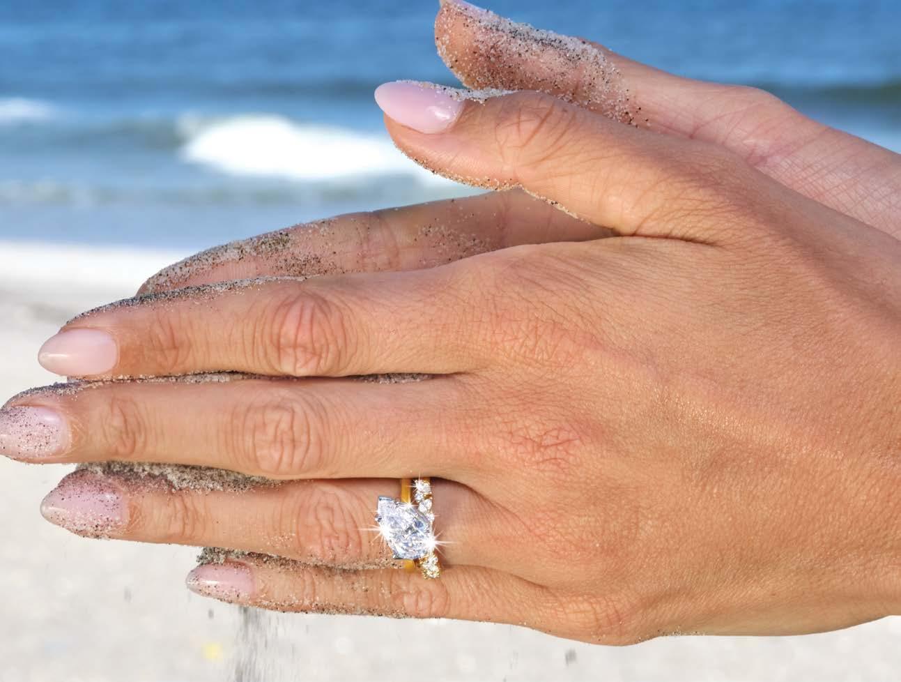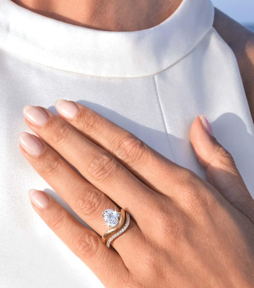 Nothing says luxury like a non-traditional wedding ring. Not to dismiss the classics—but recent trends have taken a turn for the better. Yellow and white gold now resonate with maximalists and minimalists alike, blurring the lines between bold and understated. From bezel-set designs to chunky statement bands, there’s no middle ground. Your engagement ring becomes your everyday diamond. The piece you slip off to wash your face and the last thing you see before bed. It should do more than shine; it should sparkle. For the bride, the perfect foundation for your canvas may look a lot like the our favorite trends we’ve curated—starting with slanted and
