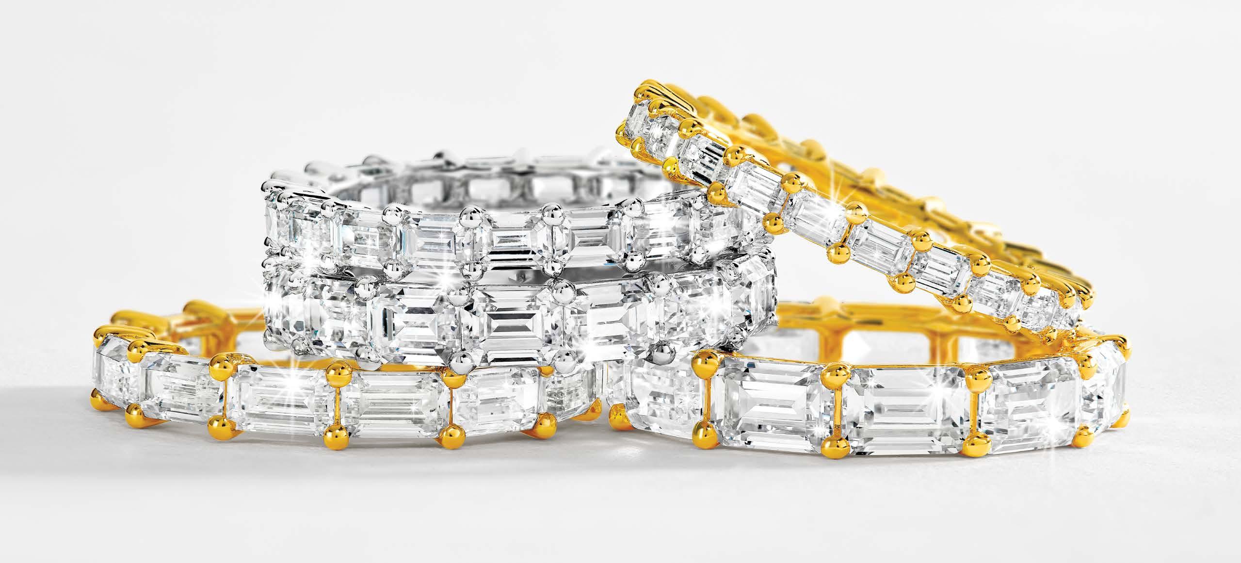 This Page: Bezel Diamond Hidden Halo Ring MB000129 | Three-Row Pave Seamless Halo Ring MB000117 | Three-Row Pave Band MB000176 | Tapered Hidden Halo Ring MB000125 | Opposite Page: Oval Diamond Band MB000389 French Pave Hidden Halo Ring MB000144 | Brushed Milgrain Edge Band MB000426 | Diamond 3-Prong Tennis Bracelet (1-5/8 tcw) TM027861 | Round Diamond Tennis Bracelet (5 tcw) TM027838