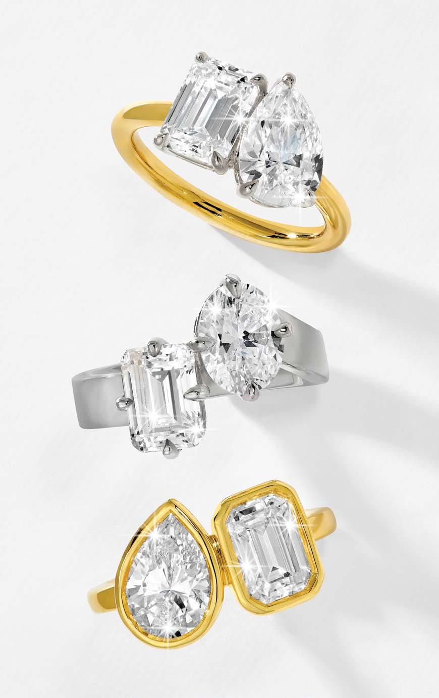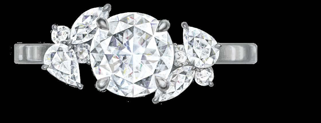 Above: 5 Stone Pinched Ring MB000300 | Trellis U-Shape Band MB000573 | Multi-Baguette Ring MB000264 | Trellis U-Shape Band MB000573 | Cluster Soft Cathedral Ring MB000333 Left: Toi et Moi Emerald & Pear Ring MB000168 | Toi et Moi Emerald & Oval Wide Ring MB000274 | Toi et Moi Pear & Emerald Bezel Ring MB000272 | Opposite Page: Iris Ring MB000343 Diamond Tennis Bracelet (4-7/8 tcw) TM026171