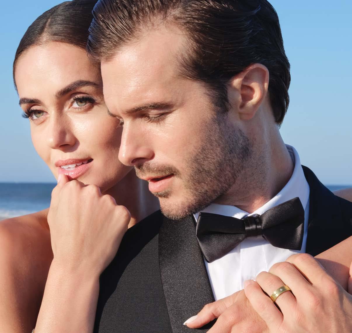 He deserves a band that’s made just for him. If you want to complement your partner’s ring, match the metal and keep the silhouettes similar for a beautifully coordinated ‘his and hers’ moment