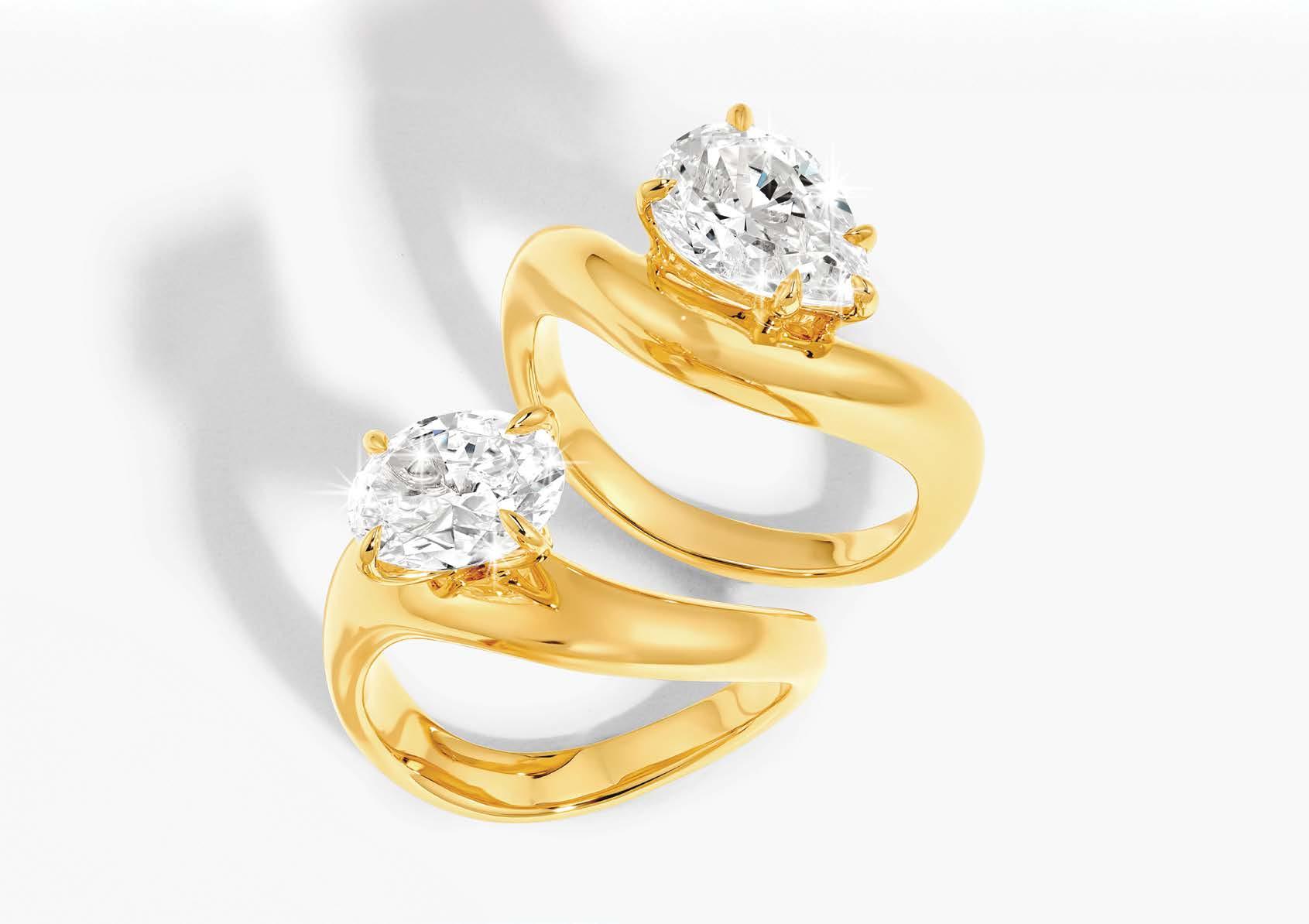 Above: Featuring two Wave Rings (Pear & Oval) MB000325 | Left: Slanted Wave Ring MB000324 | Wave Pave Band MB000358 | Below: Double Chevron Ring