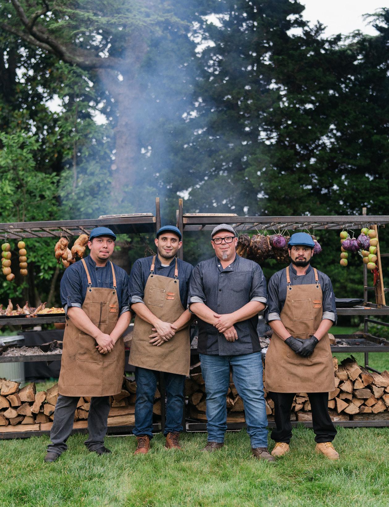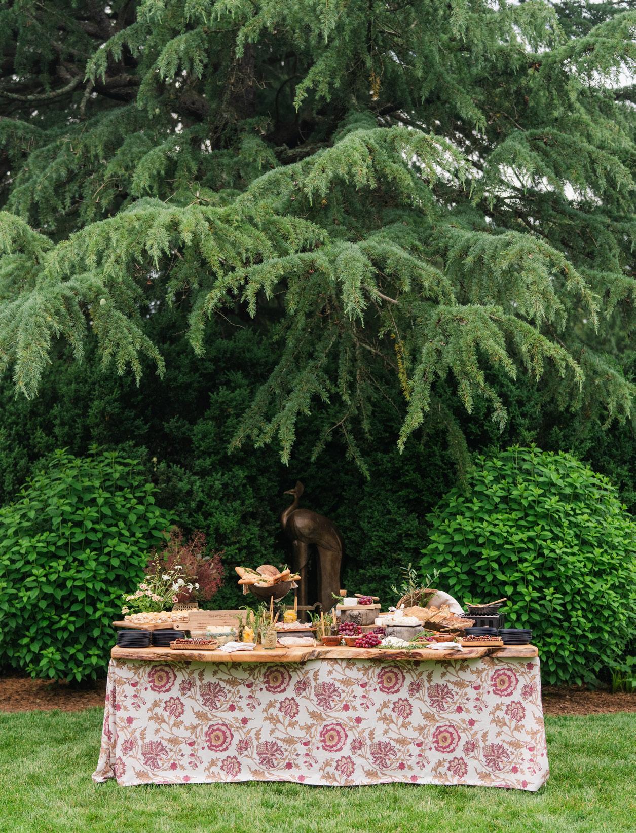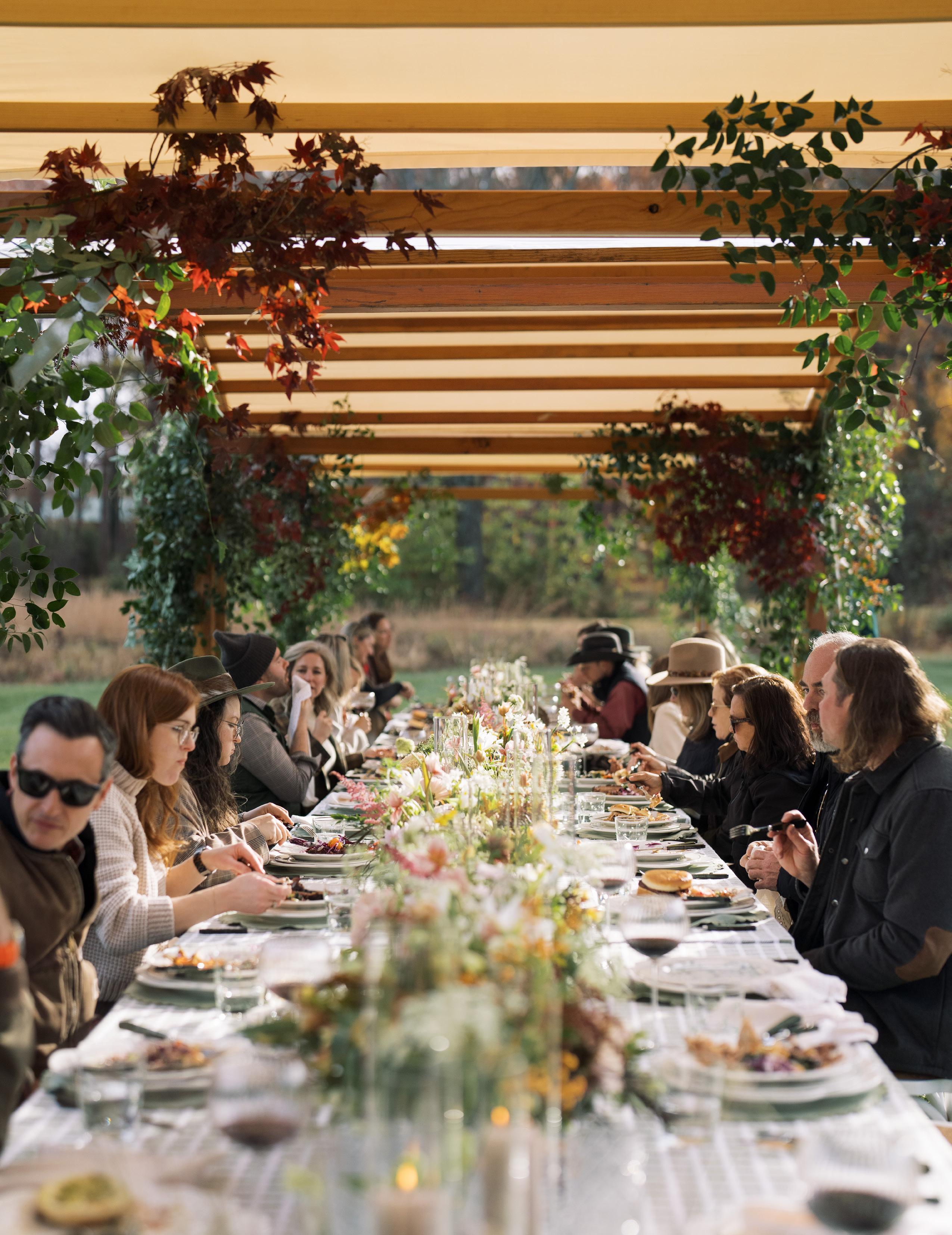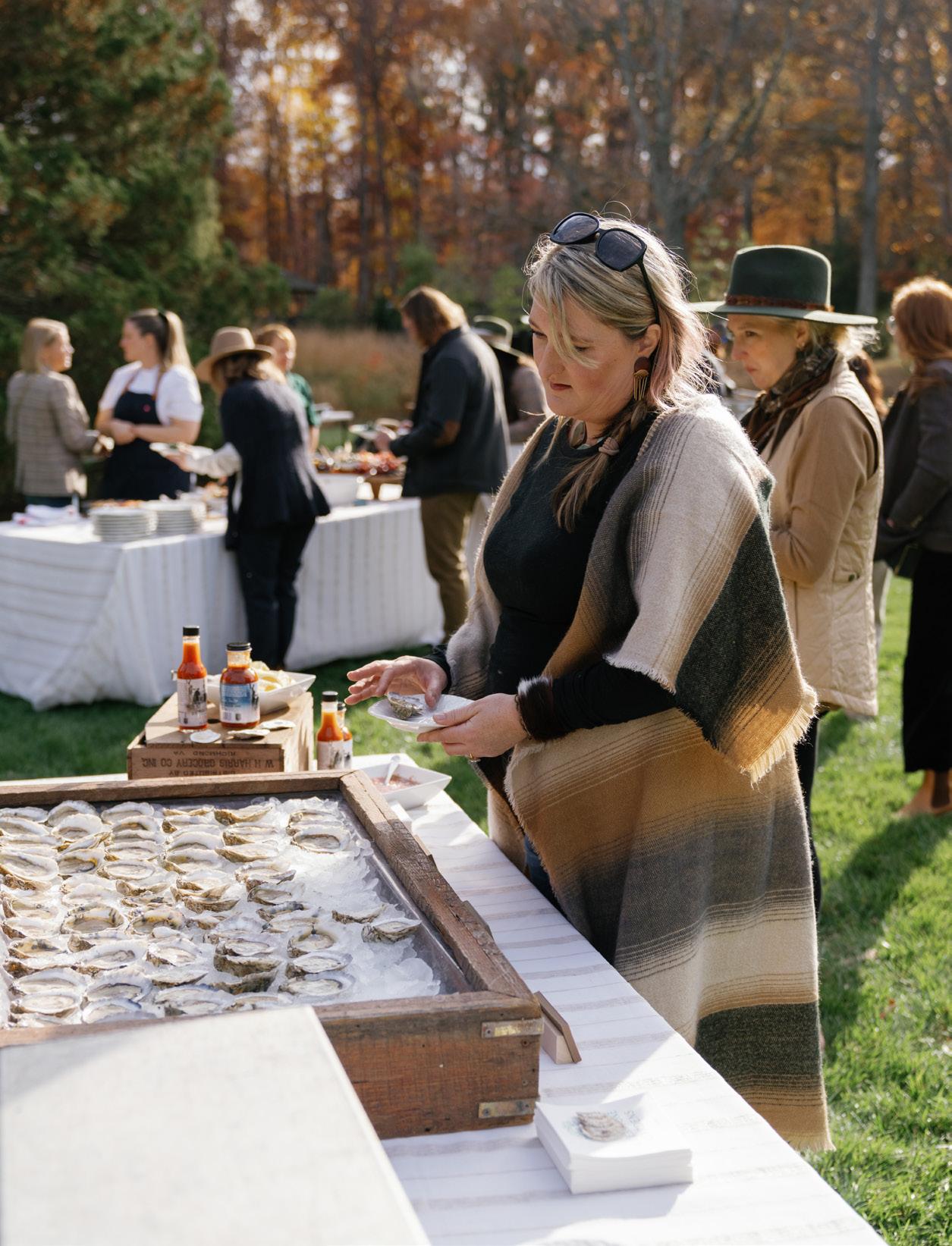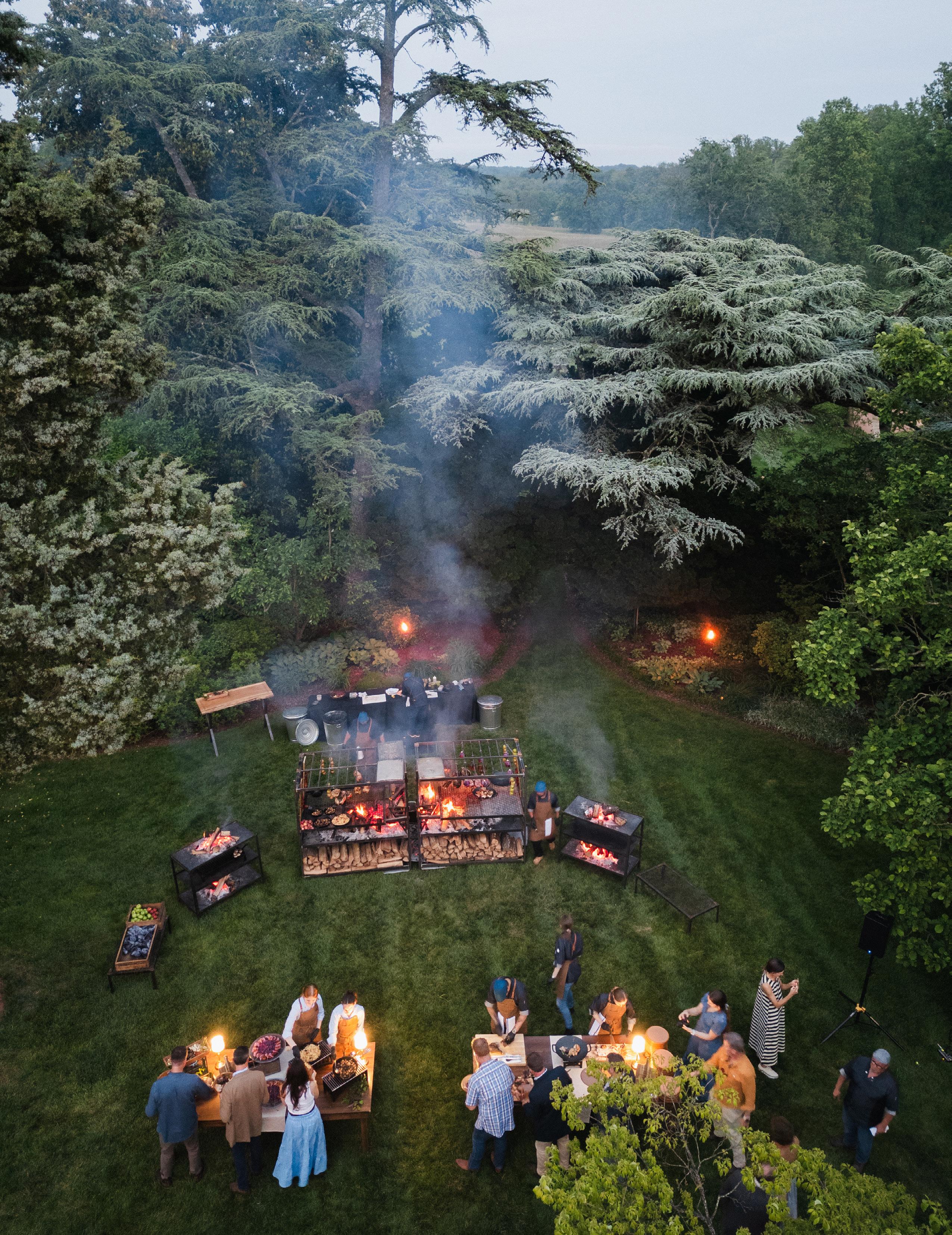 An outdoor field feast featuring chef, farmer and vintner attended stations with all culinary components sourced from The Piedmont
