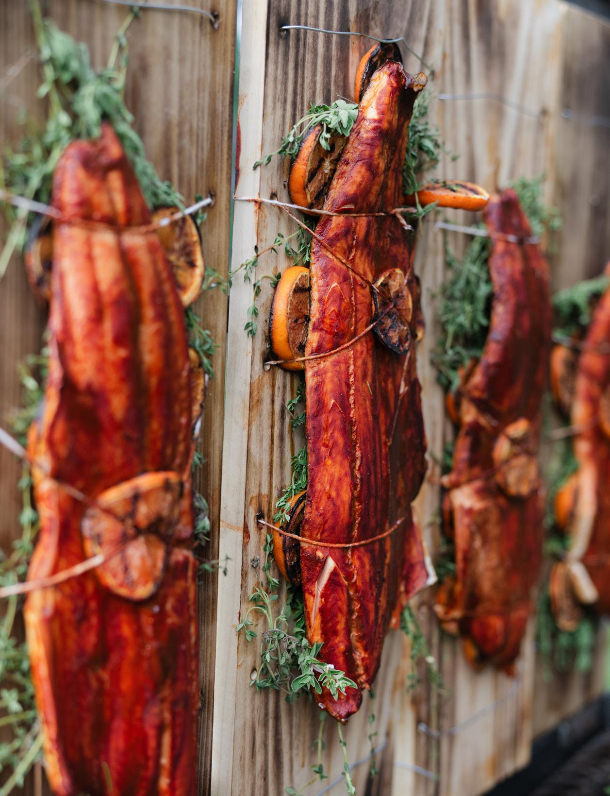whole ribeye racks, lemon and rosemary rubbed chicken, wild alaskan salmon