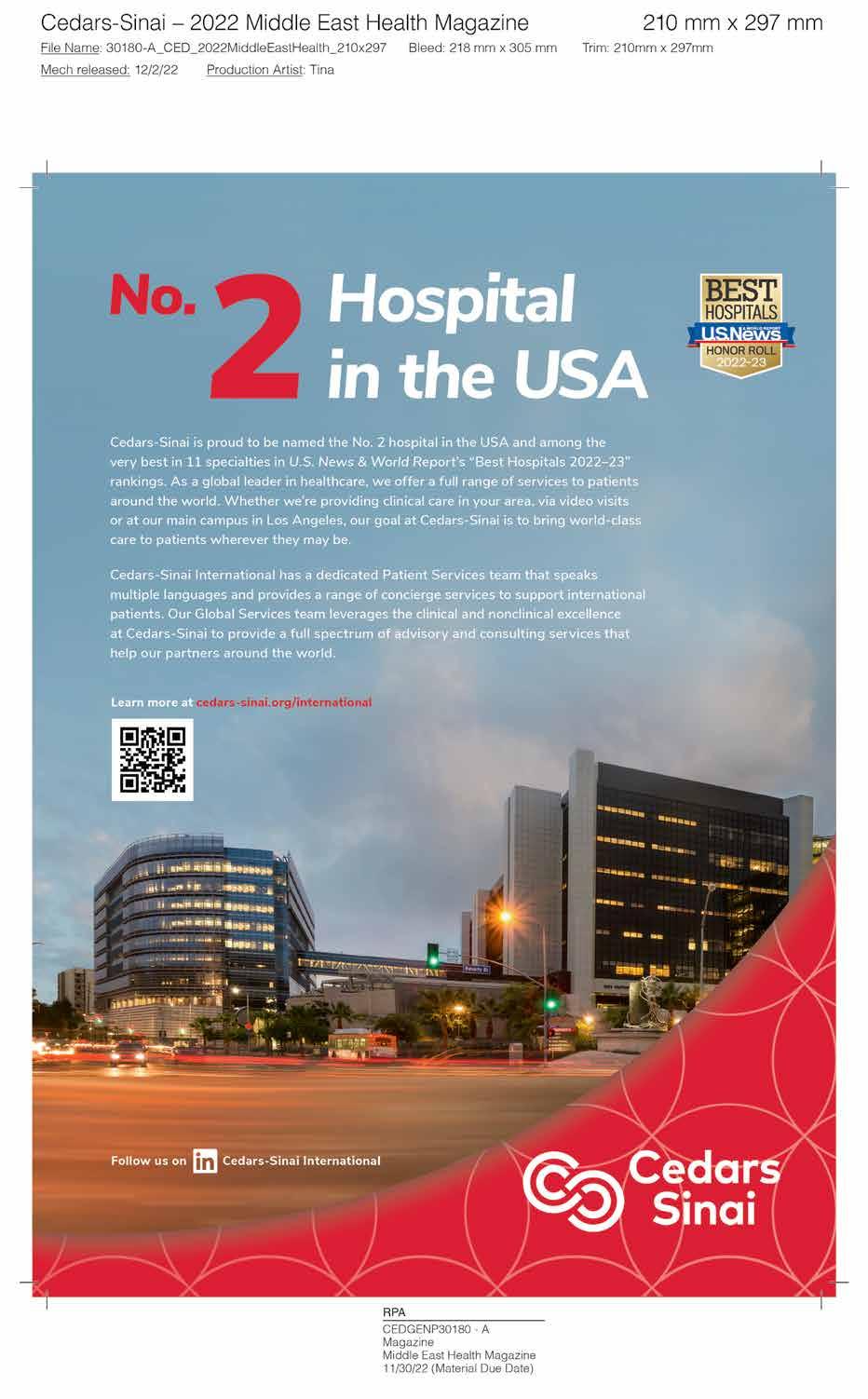 www.MiddleEastHealth.com Bahrain US$8, Egypt US$8, Iran US$8, Iraq US$8, Jordan US$8, Kuwait US$8, Lebanon US$8, Oman US$8, Qatar US$8, Saudi Arabia US$8, Syria US$8, UAE US$8, Yemen US$8 Serving the region for over 40 years January - February 2023