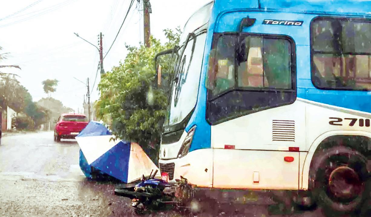 Motociclista para sob ônibus e aguarda socorro por 1 hora protegido da chuva por populares; mau tempo causou problemas pela cidade