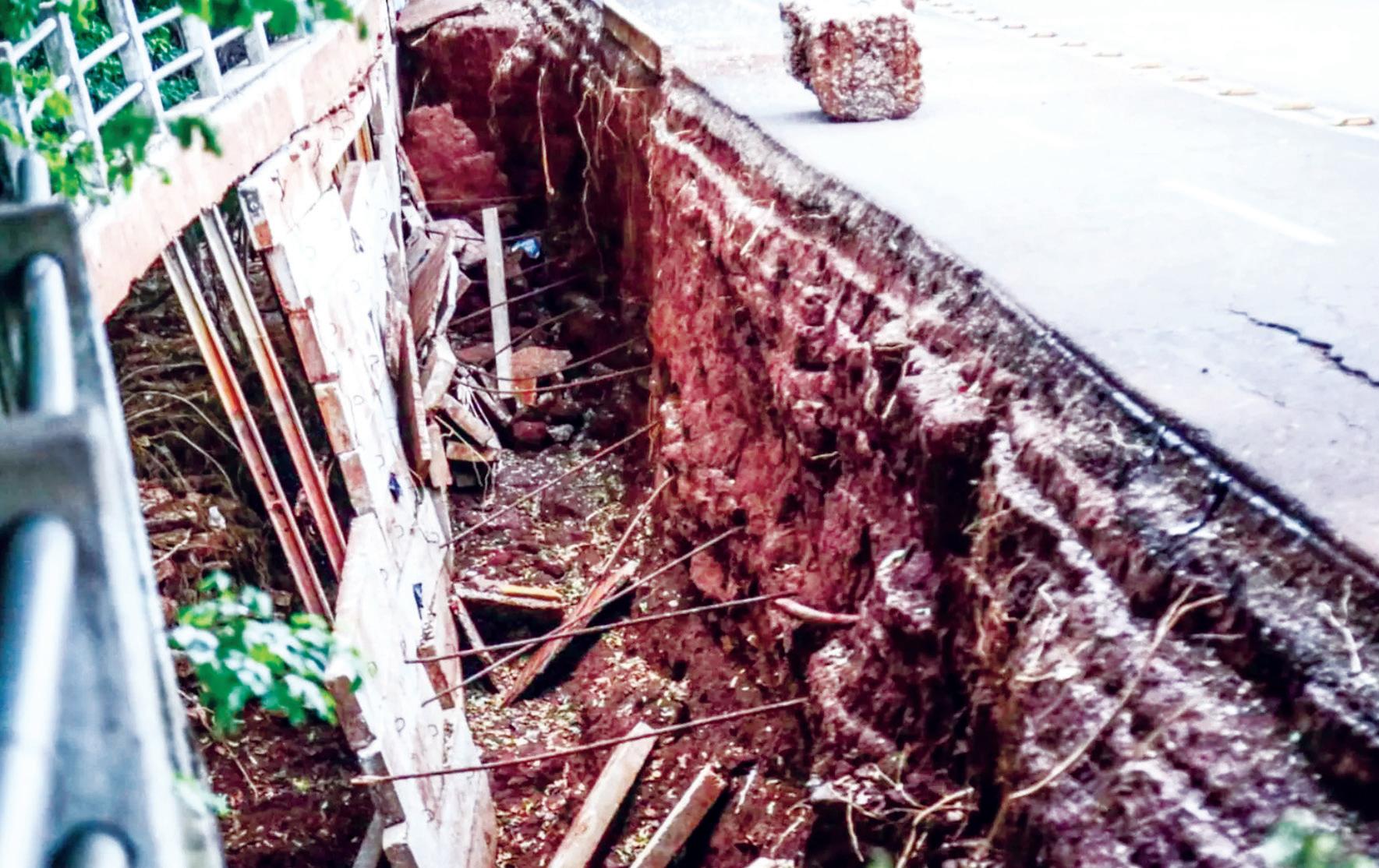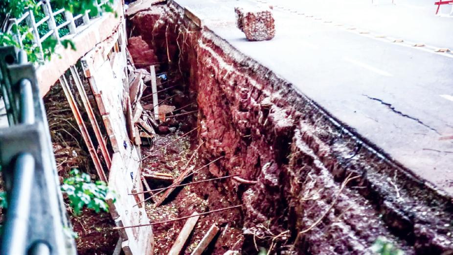 Além da passarela, parte do asfalto próximo ao local rachou com a força da água da chuva.