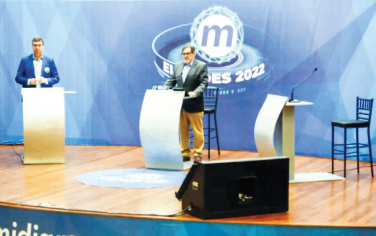 Riedel iniciou as considera ções finais lamentando a ausên cia de Contar. “Muito obrigado a vocês que foram desrespeita dos essa noite. Não é falta de agenda, não é falta de tempo, é desrespeito com o eleitor e falta de preparo para debater os gran des temas de Mato Grosso do