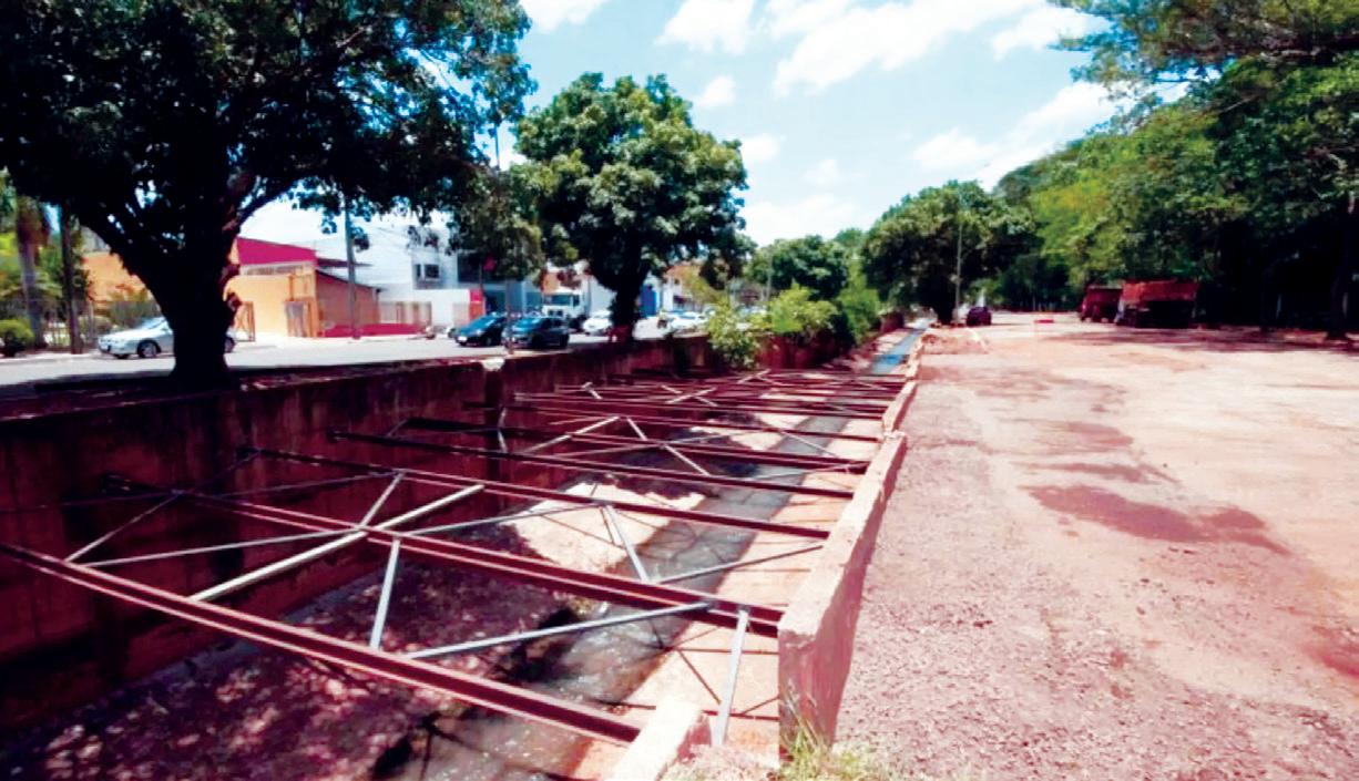 Para a revitalização, traba lhadores reposicionaram 2 pla cas de concreto na estrutura do córrego. As placas, existentes desde a canalização original do Corrego Segredo, puderam ser reaproveitadas já que não fo ram comprometidas.