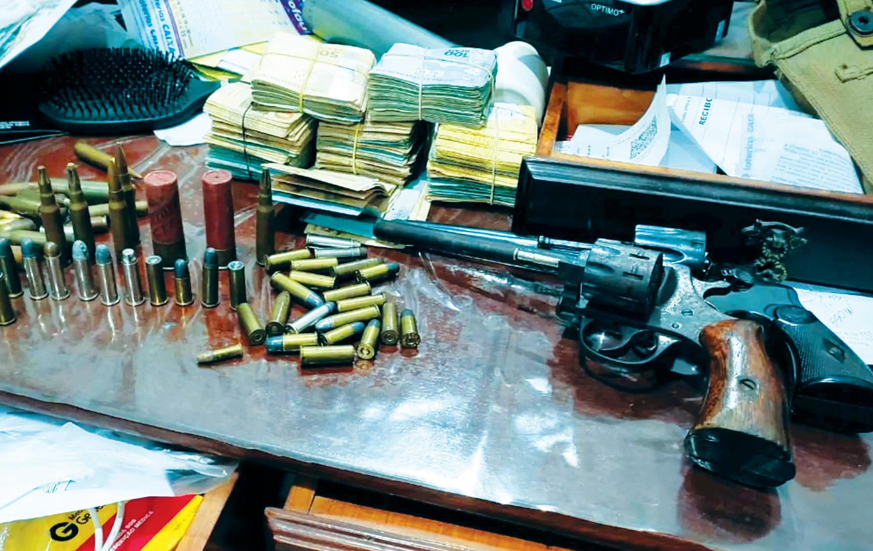Foram apreendidas duas ar mas calibre .38, cartuchos e mu nições; e R$ 49 mil em espécie.