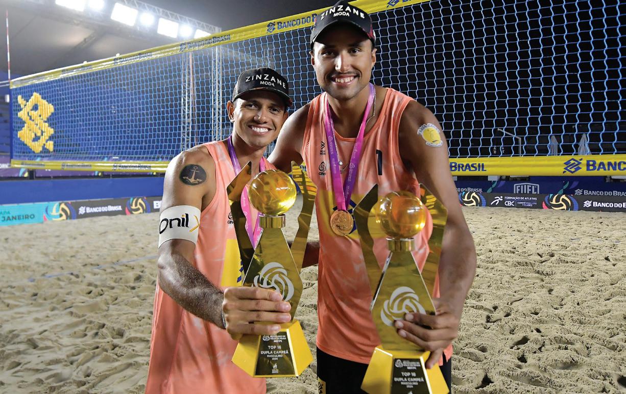 Arthur (à direita), com o parceiro Adrielson, campeões nas areias do Rio de desenvolvimento para atletas em ascensão. Nesta competição, o Mato Grosso do Sul também