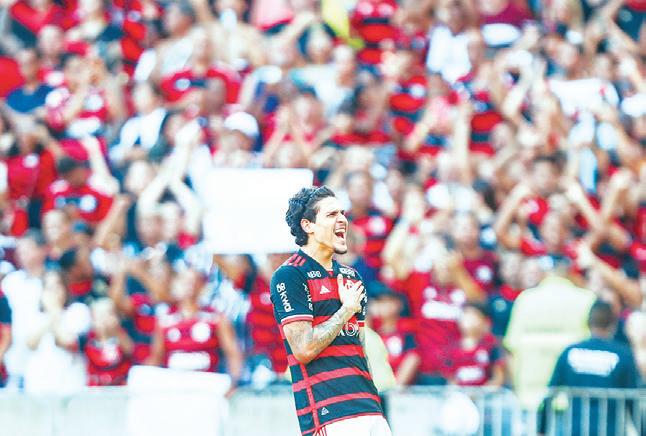 Pedro comemora gol na vitória do Fla e ‘anuncia’ chegada de seu filho