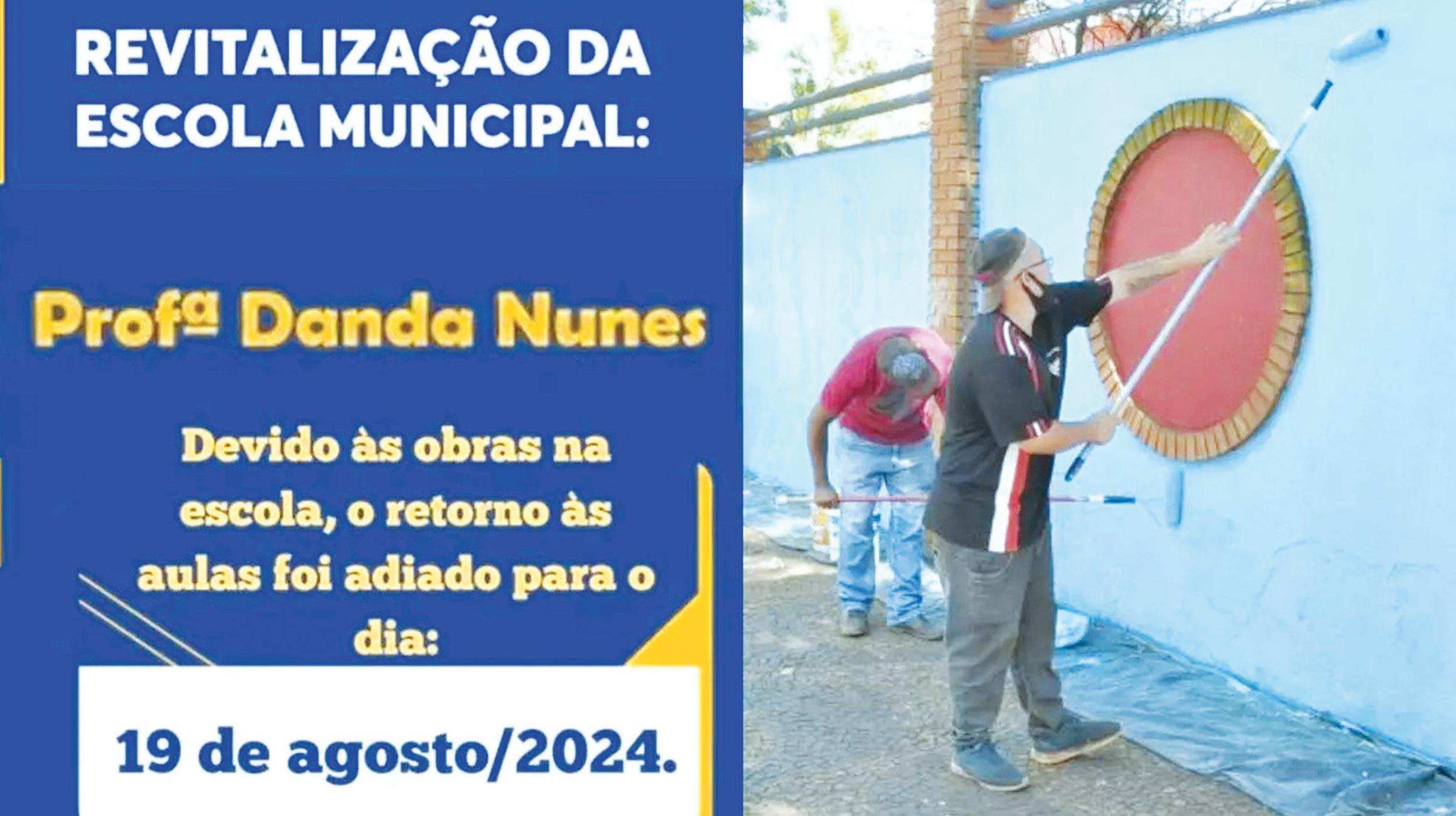 Aviso sobre realizaçao de obras na Escola Profª. Danda Nunes indica reinício das aulas apenas em 19 de agosto