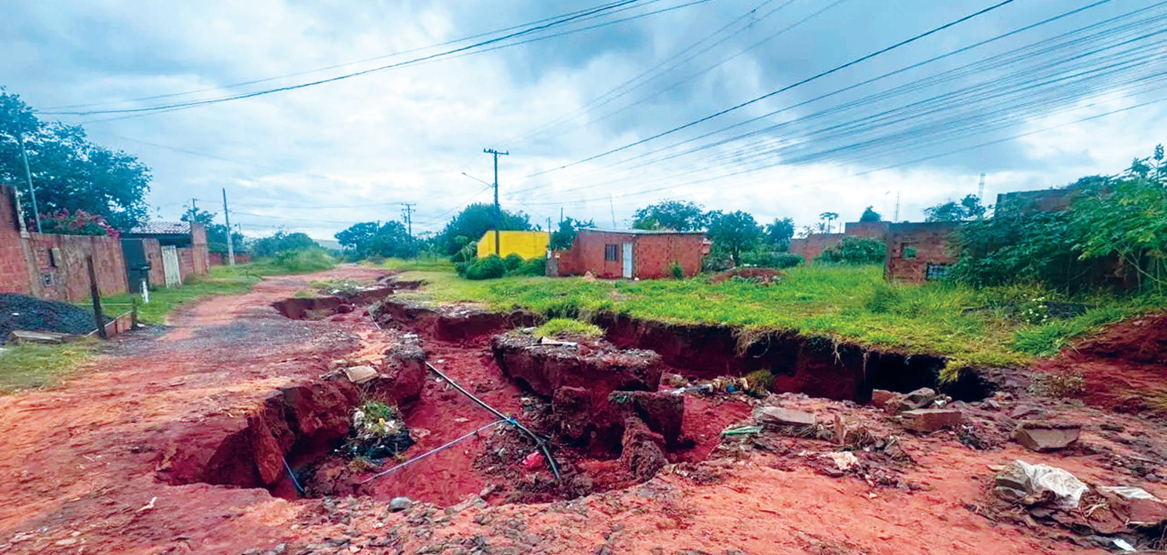 Castigada pelas chuvas que atingem a Capital, rua do Jardim Noroeste é tomada por cratera; Sisep irá ao local